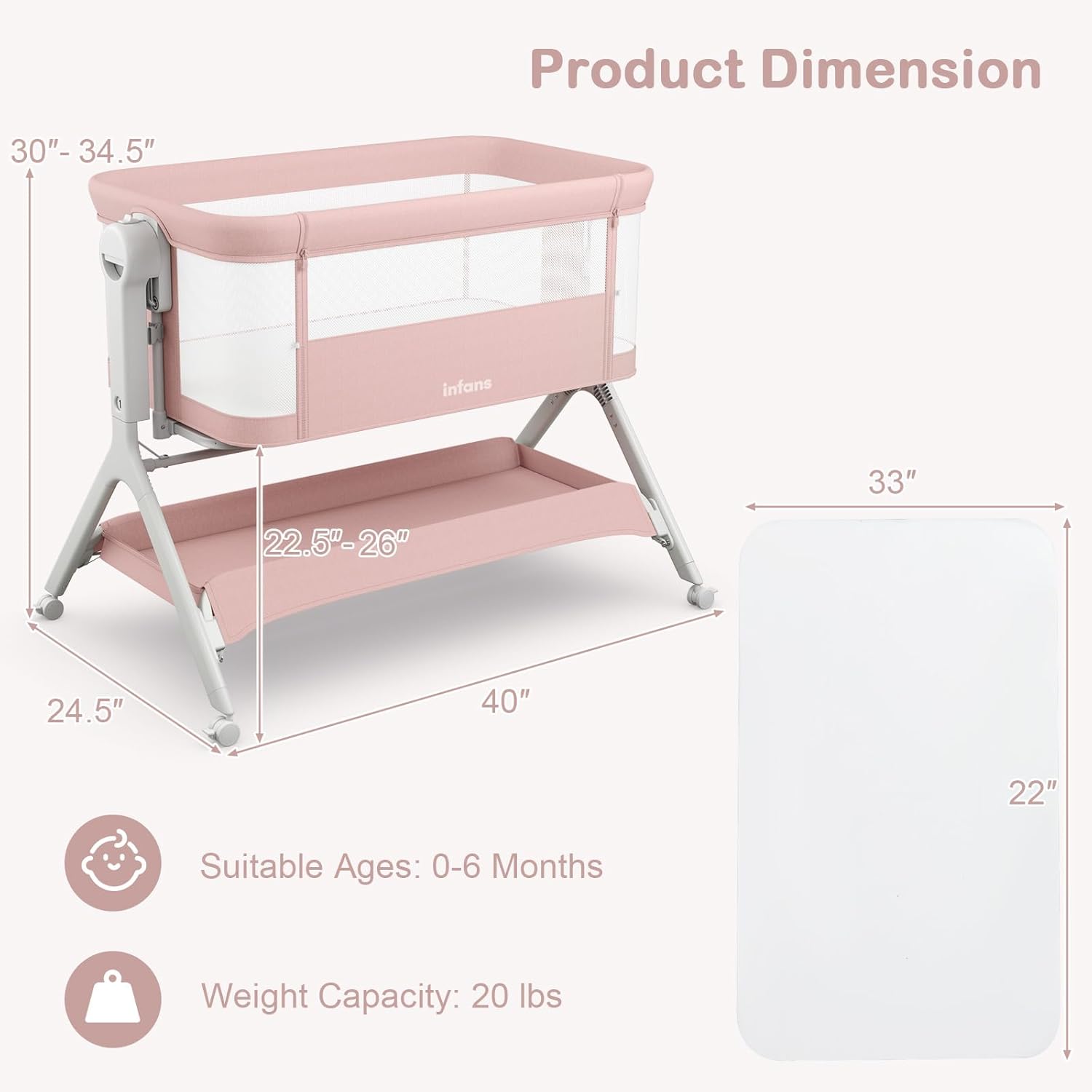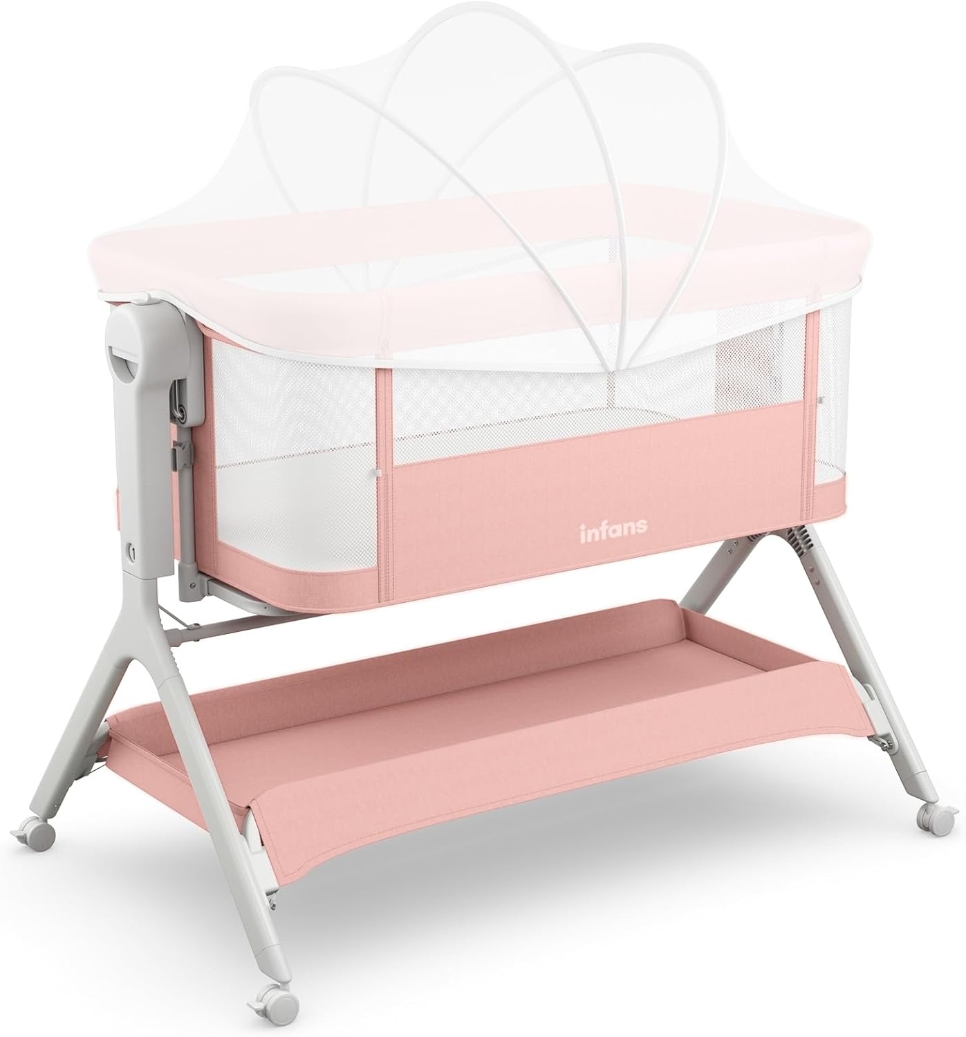 5 in 1 Convertible Bassinet: The INFANS baby bassinet can be used as co-sleeper to attached to the parents’ bed, hand-rocked cradle to soothe the little one to sleep and independent bed. Parents can change the modes freely to meet different needs