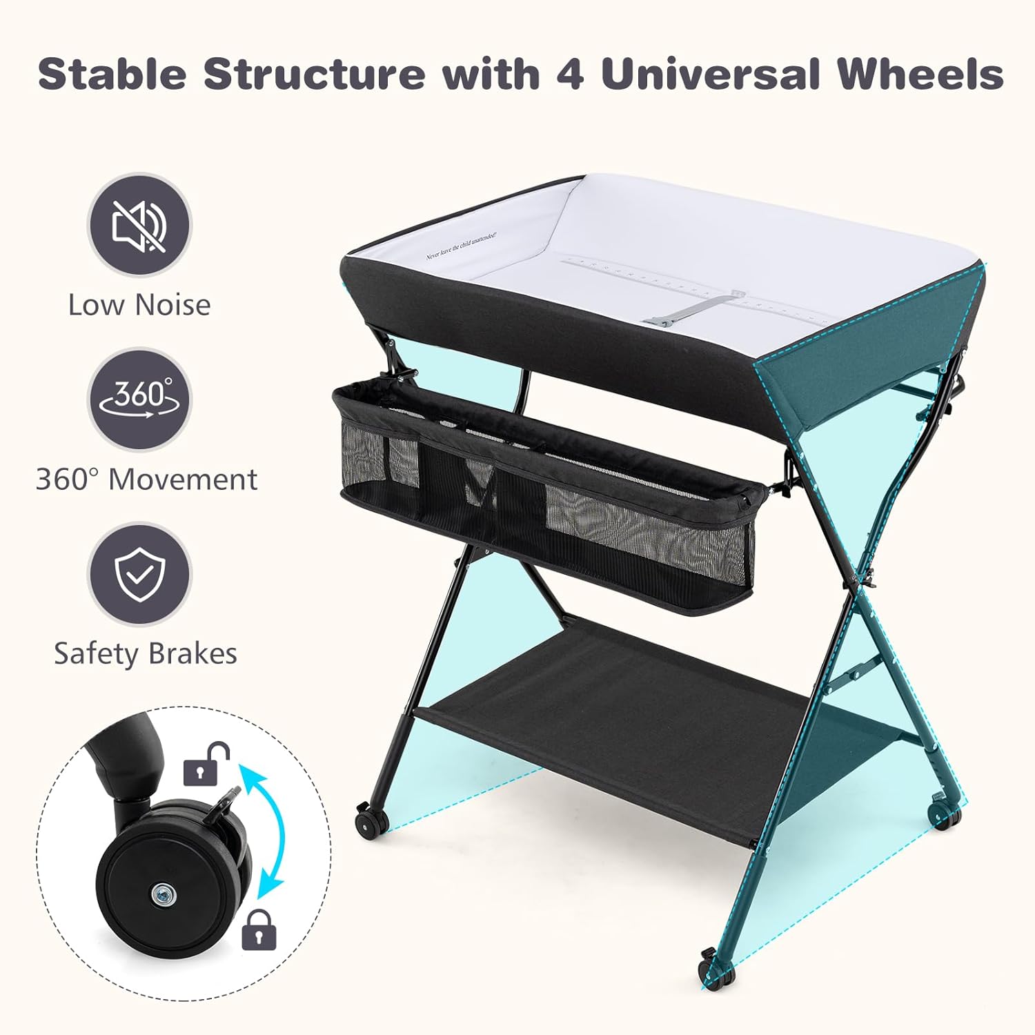 360°Lockable Wheels: The mobile nursery for newborn comes with 4 lockable silent swivel wheels to prevent the changing table from sliding and to ensure safe usage