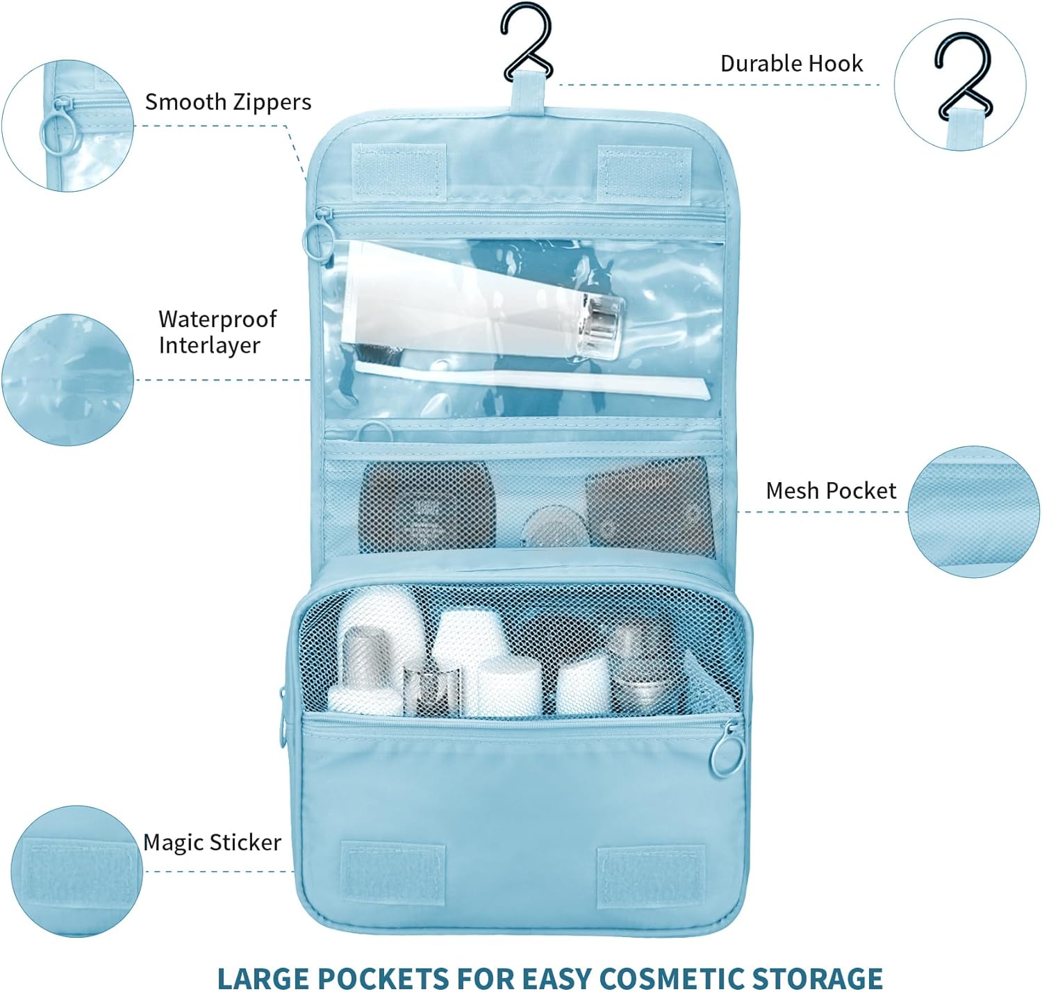 Easy to Use:A large toiletry bag can help you categorize toiletries and cosmetics and separate them from other items.This travel toiletries bag is suitable for both men and women,and comes in multiple colors to choose from