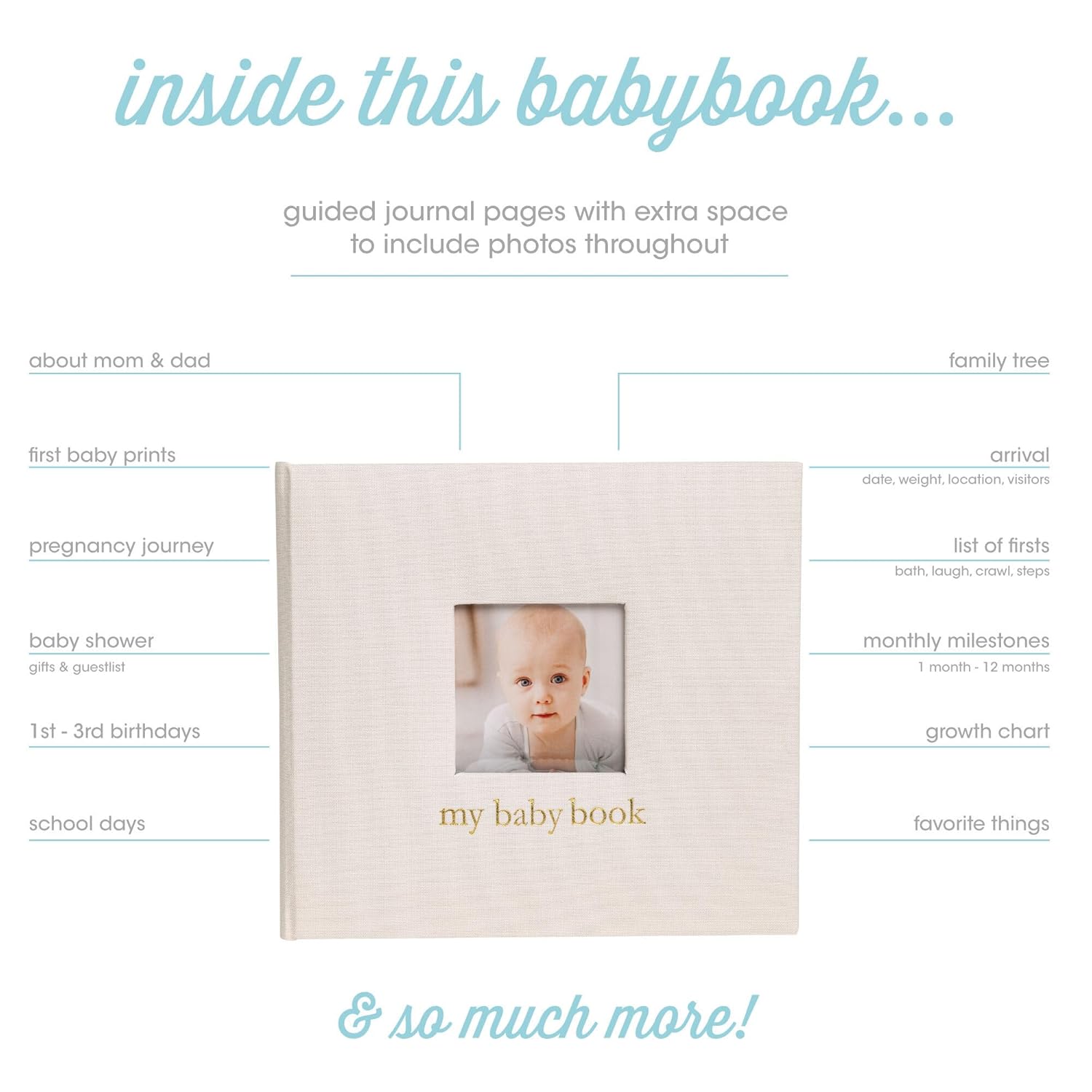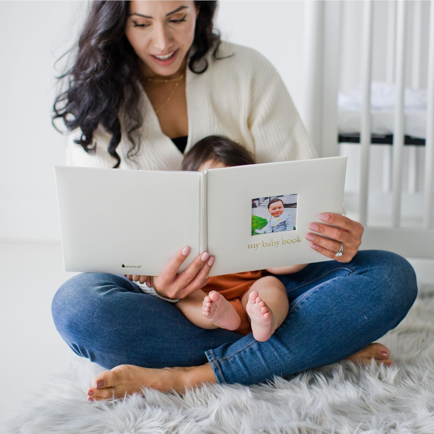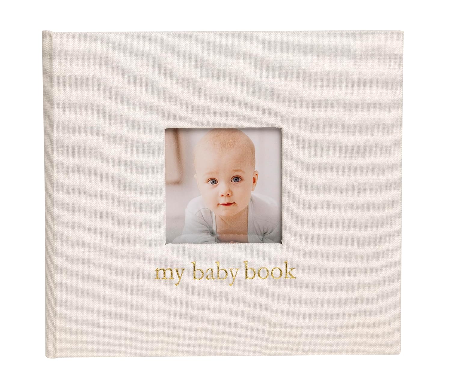 Celebrate your baby’s first precious years with Pearhead’s Ivory Linen Baby Book. This gender-neutral ivory linen baby book is crafted to preserve every special memory. From the moment you welcome your little one into the world, this timeless keepsake will help you document all the milestones, big and small. The cover features a 3 x 3-inch photo insert to showcase your favorite picture, while the durable, soft linen material adds an elegant touch, making it a cherished newborn keepsake for baby girls and baby boys. Inside, you’ll find 56 thoughtfully designed pages, offering guided prompts and plenty of space to capture your baby’s story. From their first smile to their first steps, each page is tailored to highlight life’s most meaningful moments. Not only is this baby book a practical tool for documenting milestones, but it also doubles as a stylish piece of nursery décor. Its neutral ivory linen cover blends seamlessly with any theme, making it an eye-catching addition to your baby’s room. Whether you’re a parent or looking for the perfect gift for expecting friends, this baby book is an ideal way to preserve cherished memories for a lifetime. Book Dimensions: 8″ W x 9″ H. Photo Insert: 3″x 3″