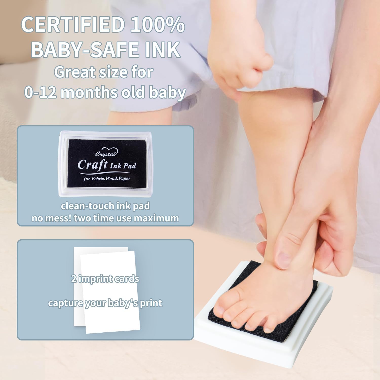 Easy to wash the ink on baby feet or hands.