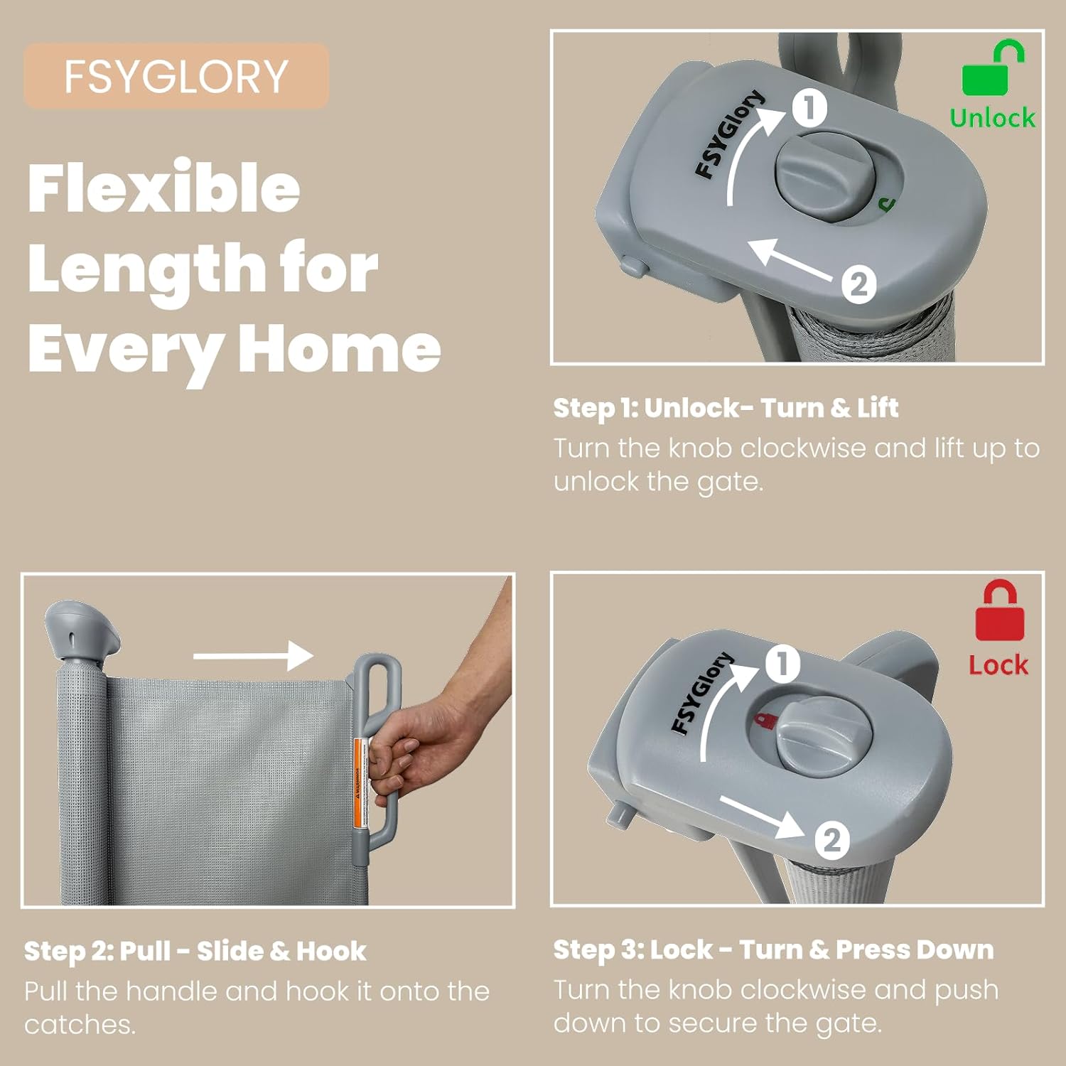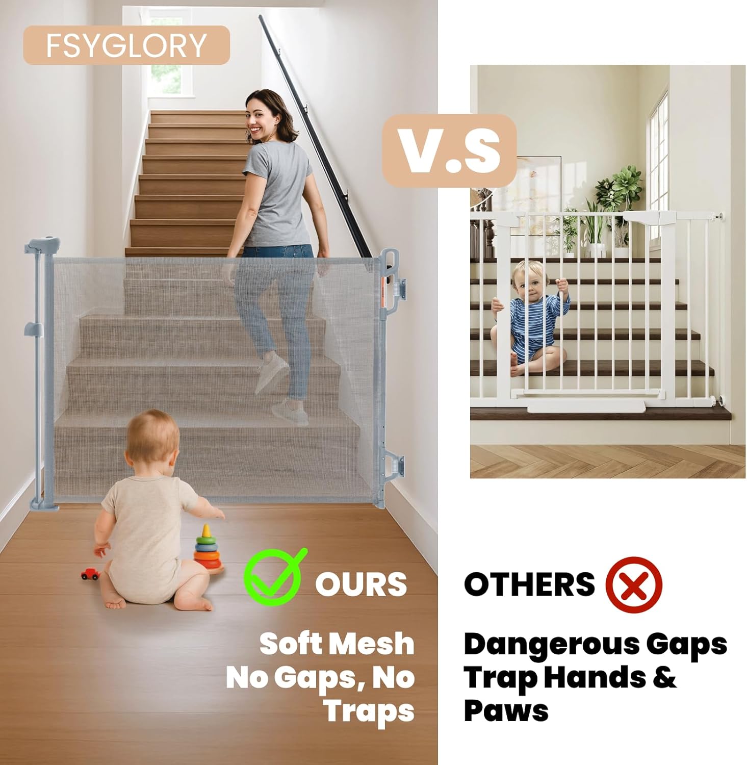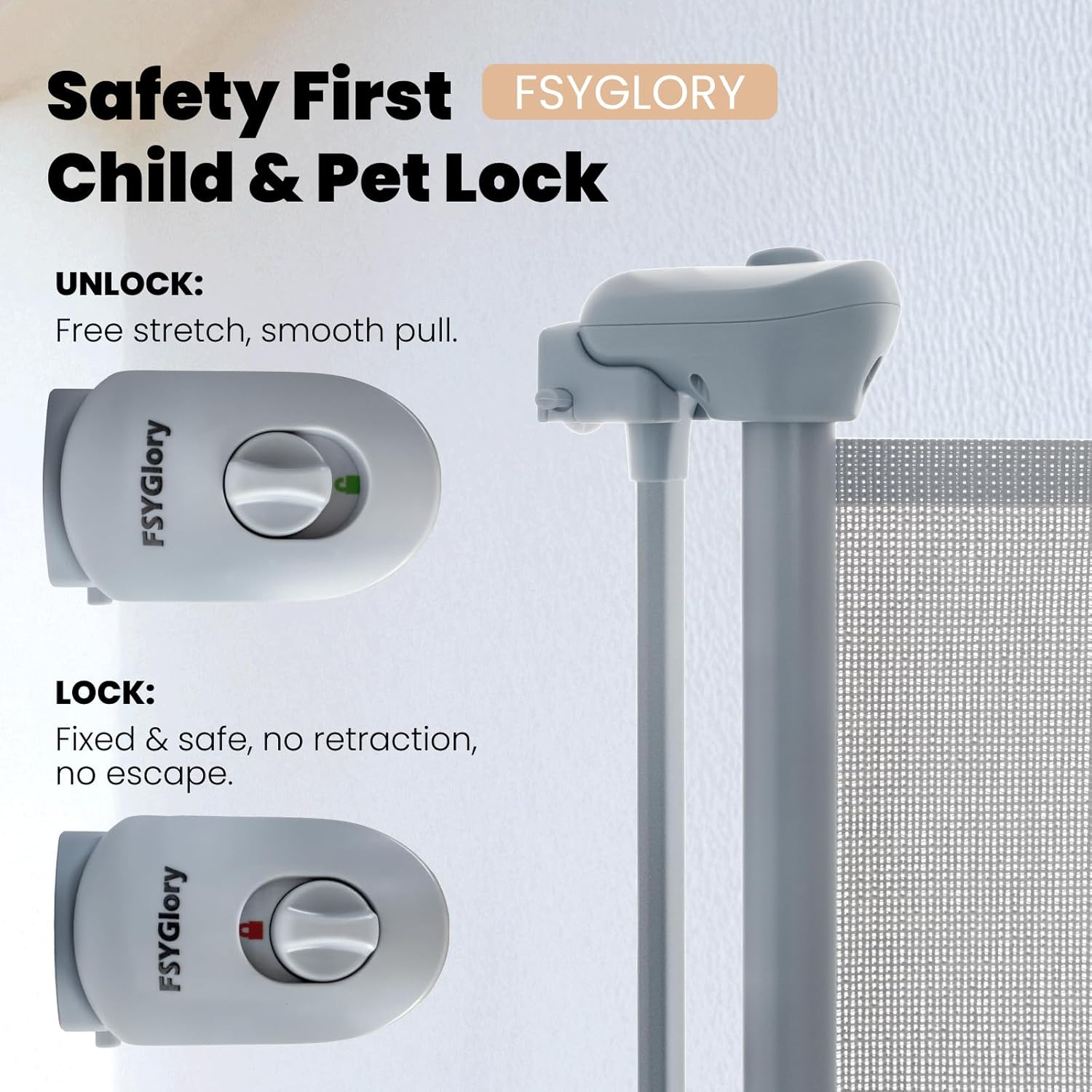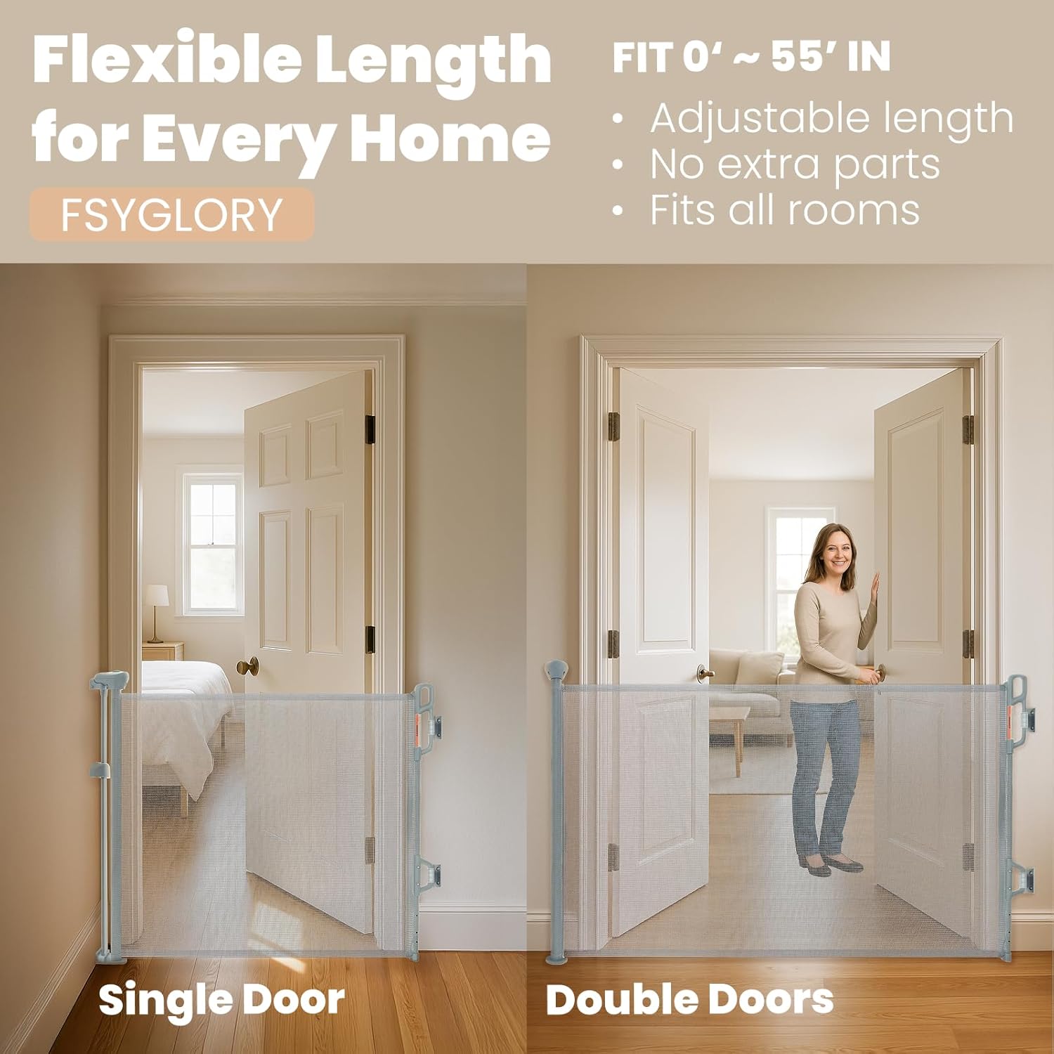ALL-IN-ONE SAFETY FOR BABIES & PETS:Protect your little explorers and energetic pets with one retractable gate. Designed for babies and dogs, it creates safe boundaries without bulky barriers or awkward DIY solutions.