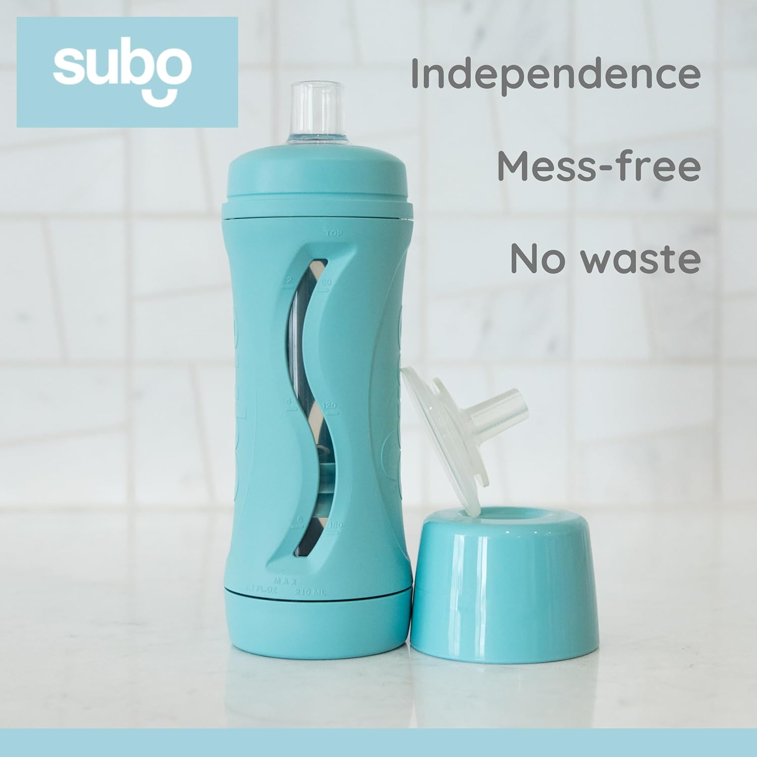 Subo Baby Food Bottle Starter Set | No Mess Baby Toddler Self Feeder | Squeeze Free Design for Purees, Smoothies, Yogurt, Oatmeal, or Thickened Liquids | Reusable Silicone Washable Cup (Aqua)