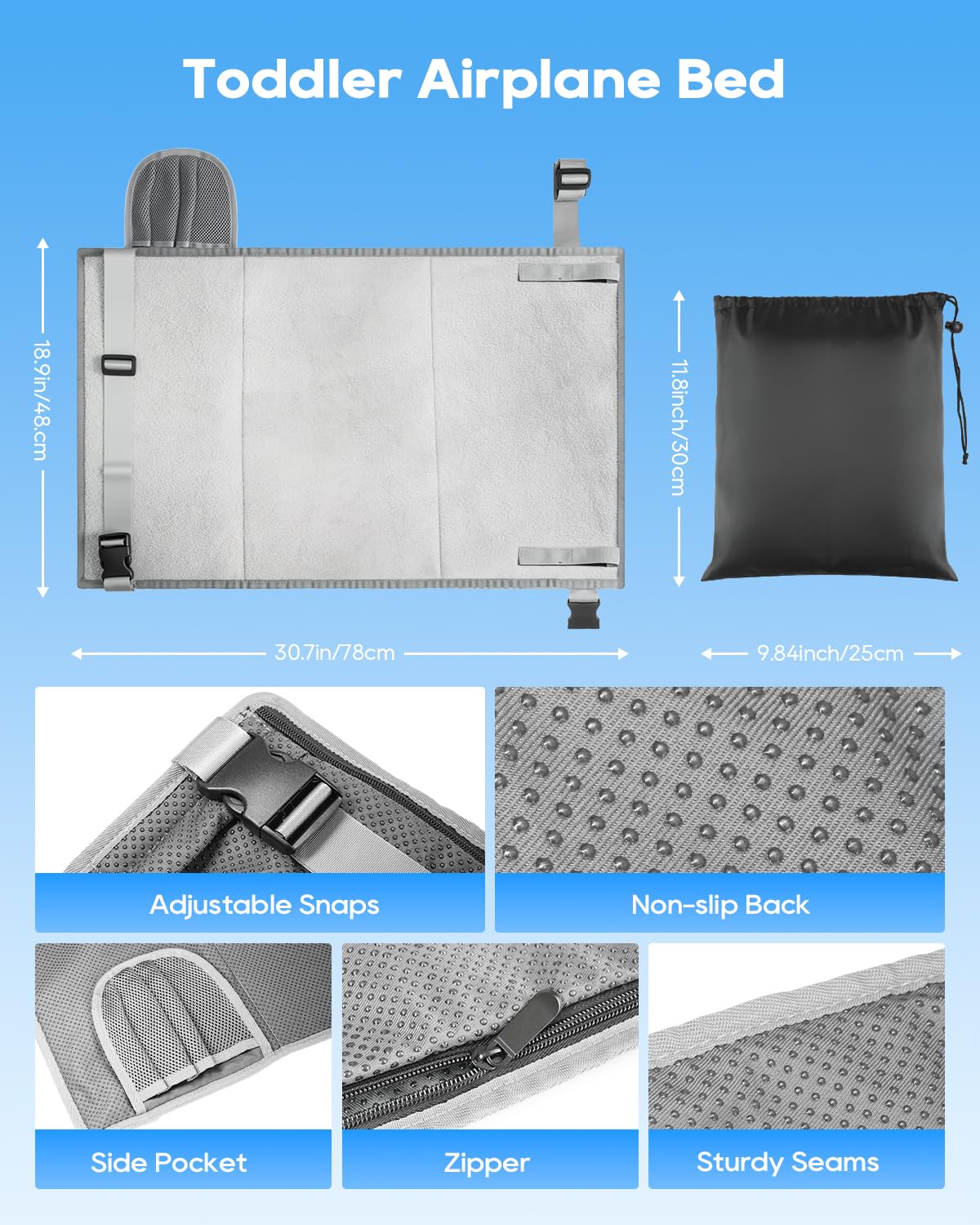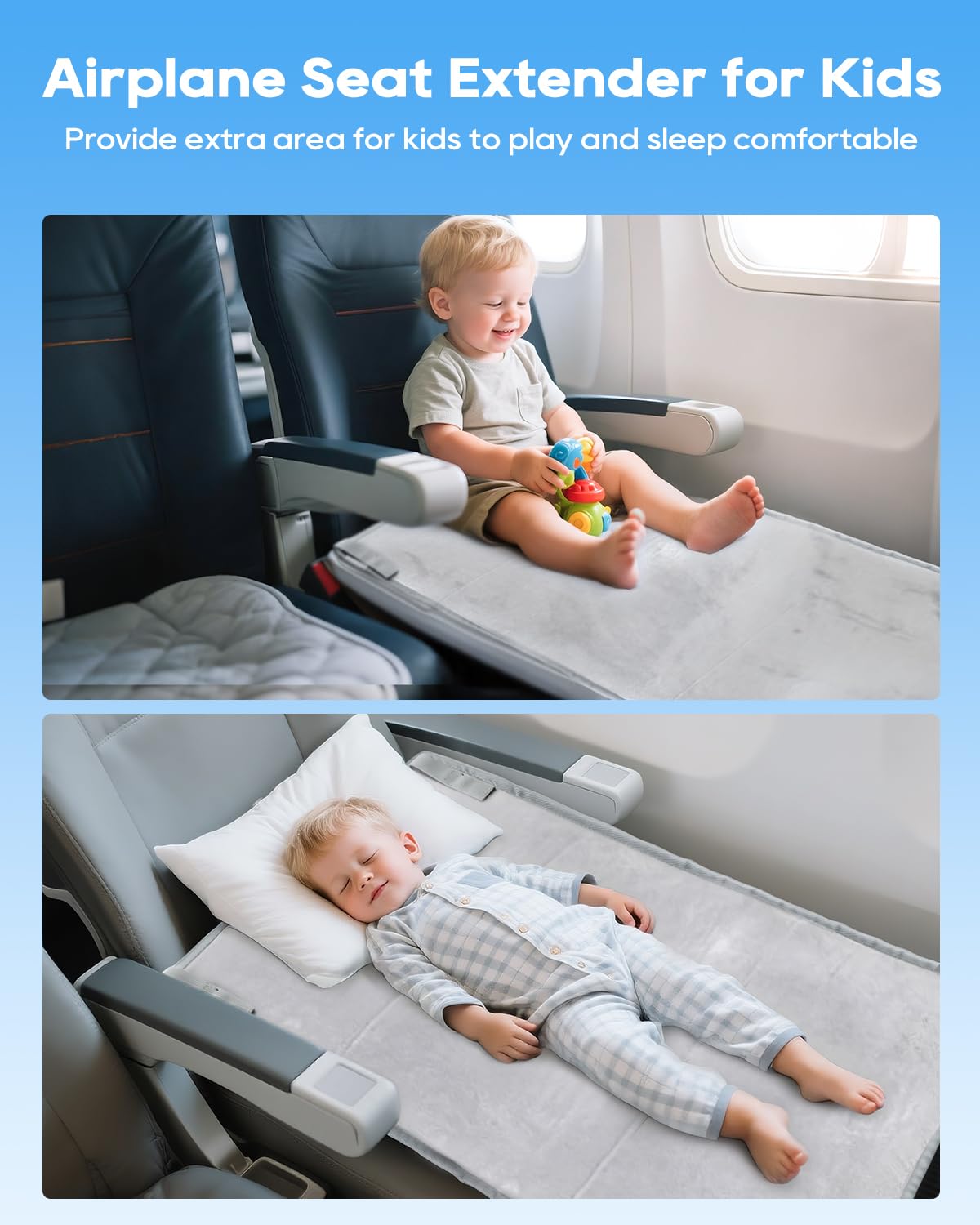 Toddler Airplane Bed, Portable Airplane Seat Extender Travel Bed for Kids, Soft Baby Plane Travel Essentials for Flying, Toddlers Long Flight Must Haves Footrest