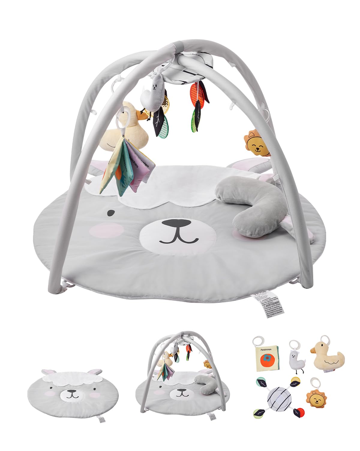 Large Play Size: Our baby activity mat measures 39.1″ x 32.7″, providing a spacious and safe play area for babies to lie down, roll over, and sit up. Additionally, it comes with a tummy time pillow, thoughtfully designed for newborns.