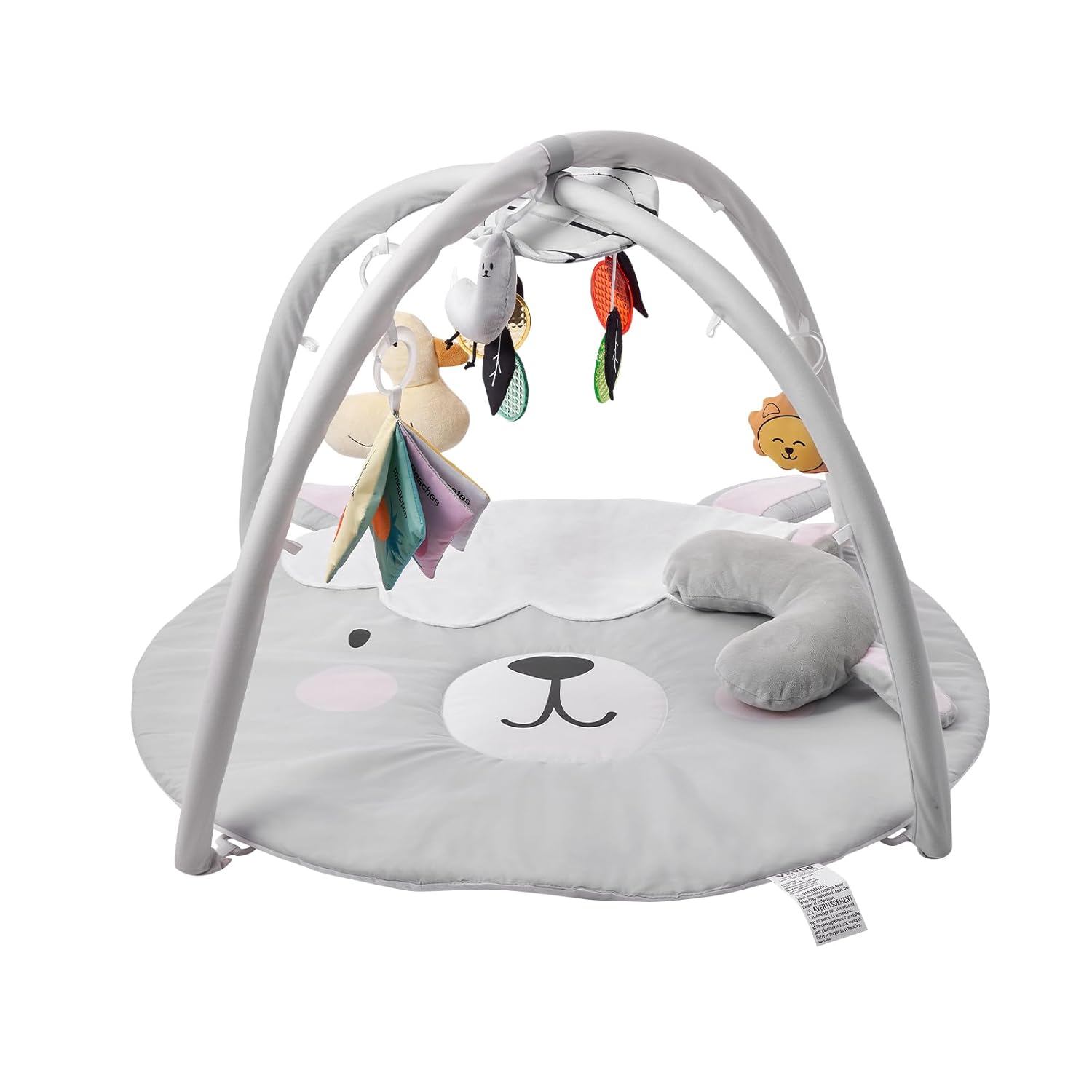 Growing with Your Baby: Designed for babies aged 0-18 months, this multi-functional baby play gym mat offers a comfortable space for rest, play, and learning. With 5 interactive toys, it promotes baby’s sensory development and motor skills, helping babies practice crawling, sitting, grasping, and more.
