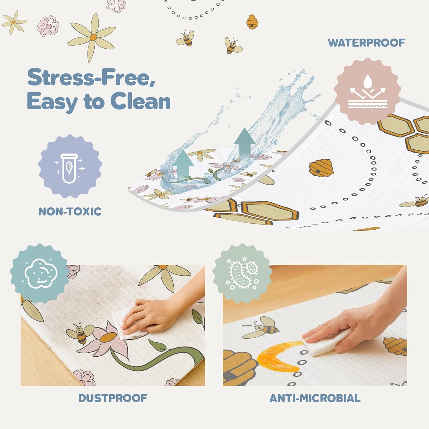 Waterproof, Non-Slip & Easy to Clean: No more mess stress—this baby floor mat features a waterproof surface that wipes clean with a damp cloth. The non-slip texture keeps the playpen mat secure, even during active play. It’s perfect for spills, snacks, and daily use. Built for hassle-free parenting.