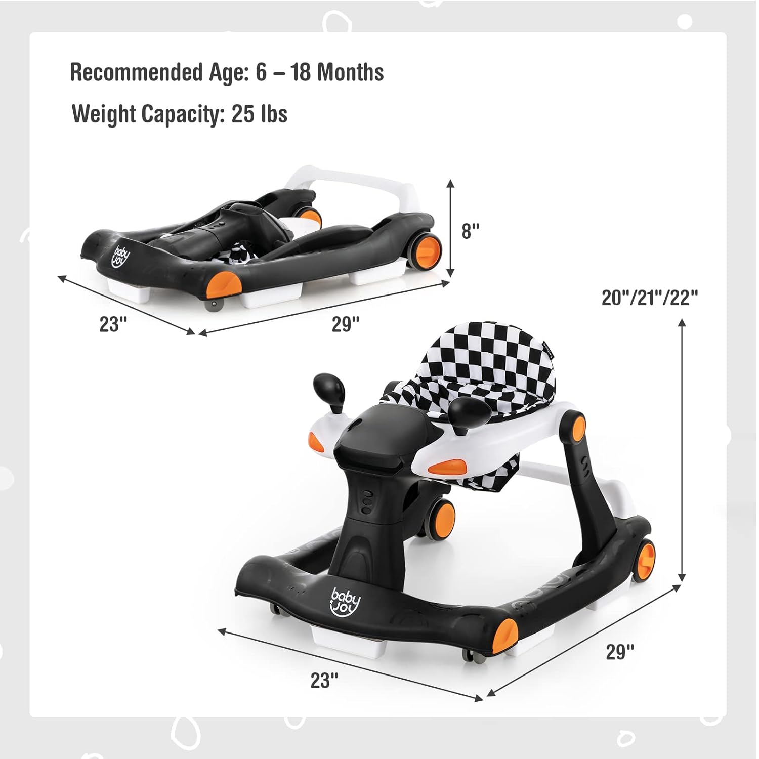 2-in-1 Multipurpose Baby Walker: This baby activity walker features a 2-in-1 design, which includes baby walker mode and baby push-behind mode, greatly meeting the needs of your little one at different stages. It is suitable for babies from 6 to 18 months old.