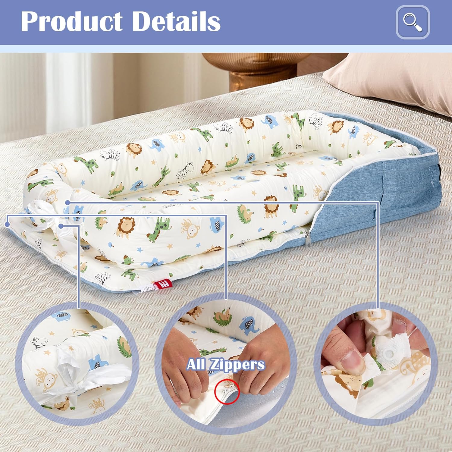 ZIPPER DESIGN:Baby lounger nest zipper design,remove the jacket for easy cleaning.Keep it clean at all times and grow up healthy and happy along with your baby!