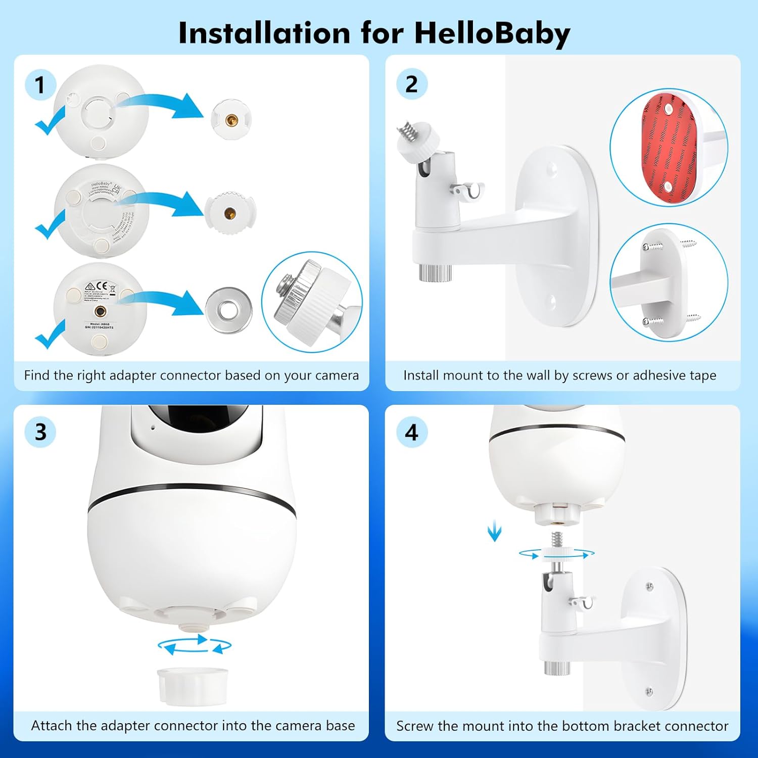 Compatibility: Designed for hello baby monitor HB65/HB40/HB6550/HB66/HB6339/HB6081/HB6550 Pro, ANMEATE SM935E, also fit other baby cameras with standard 1/4 threaded hole. NOTE: Please check the camera model before purchasing