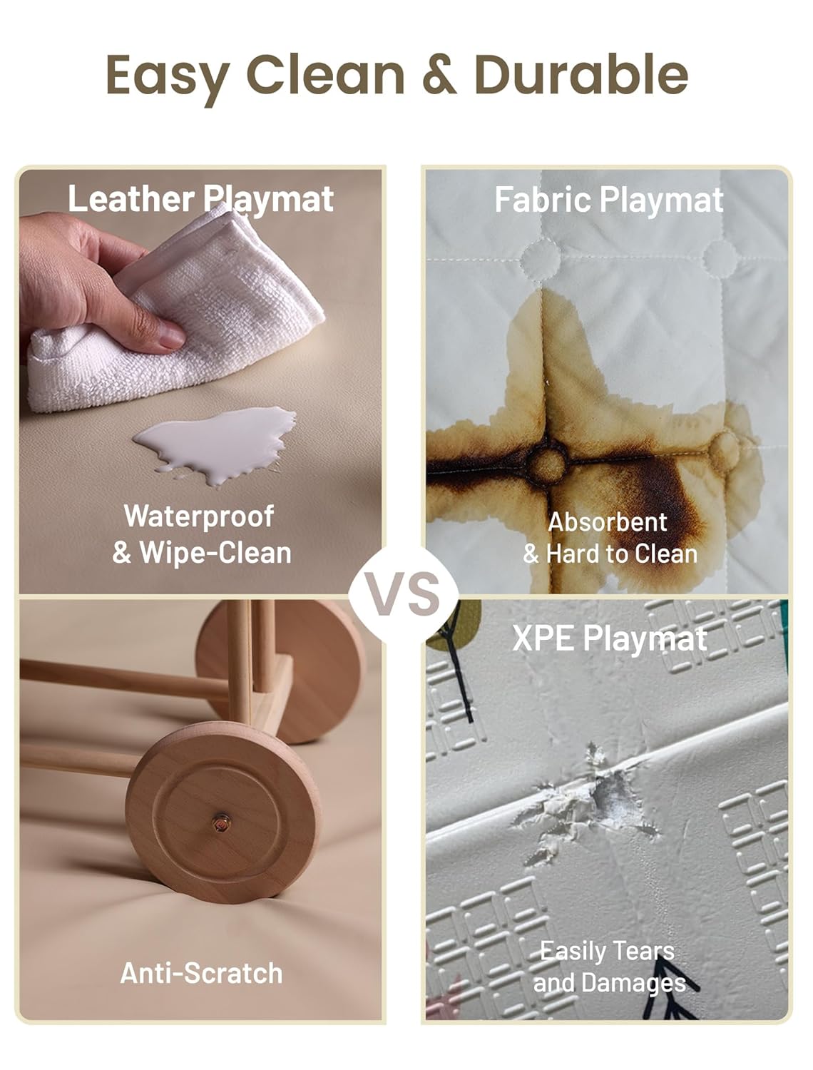 SAFE & THICKER & SOFTER: When comes to baby essential design, we Hikiddy keeps kid’s safety in mind first. This baby mat is made of premium vegan leather and thicker soft sponge filling than others which makes it safer and more comfortable for your little ones, enjoy tummy time, early step and bonding time.