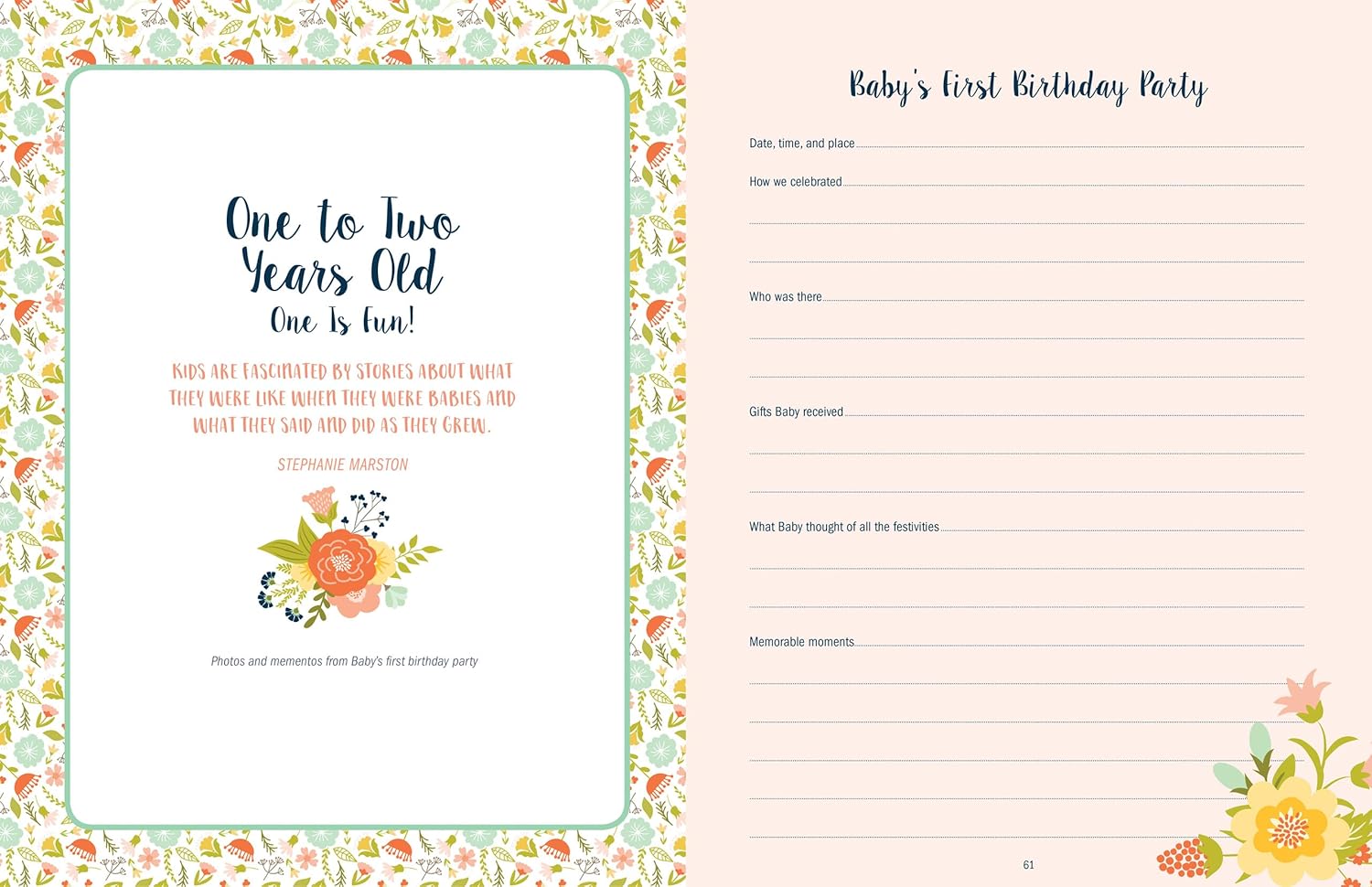With lovely floral art, a soft padded cover, guided pages, and space for photos galore, this is the perfect baby keepsake!
