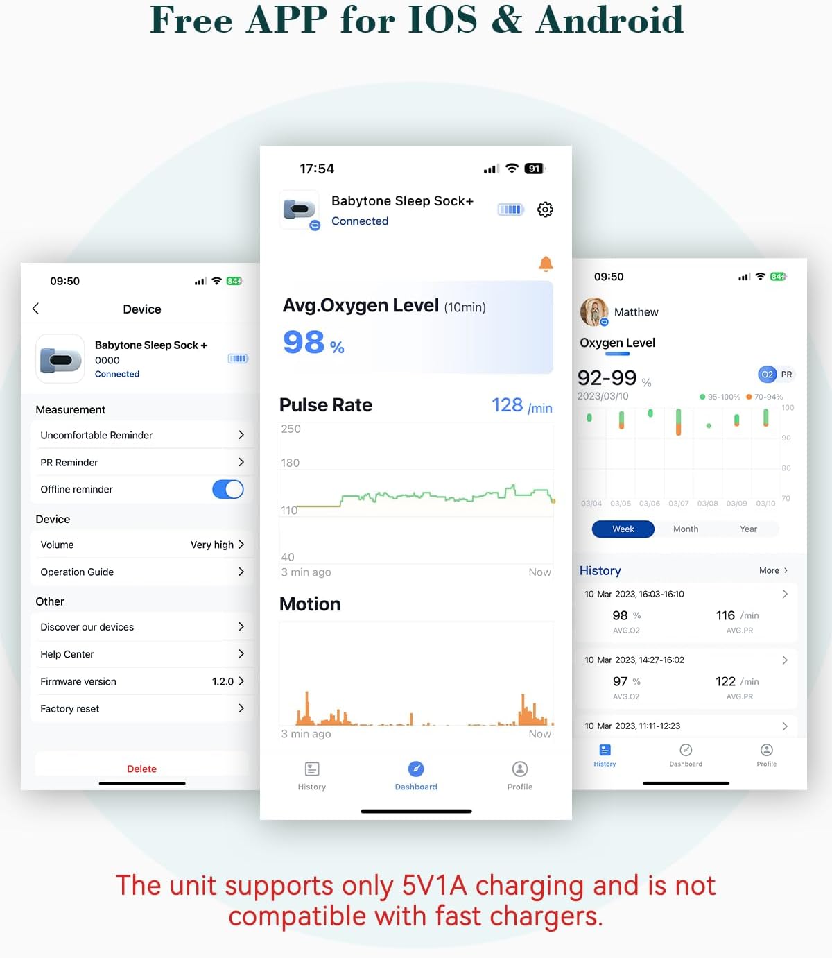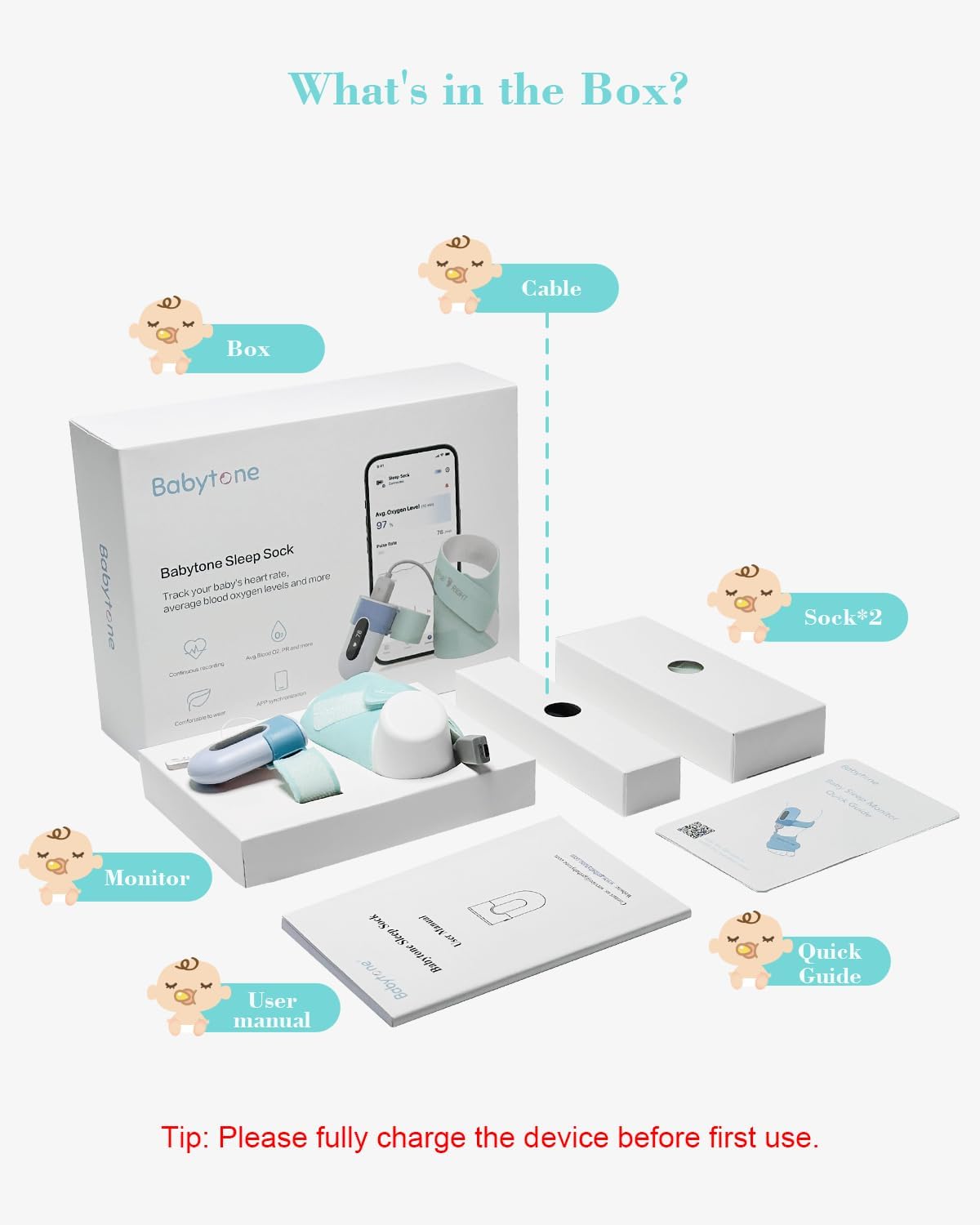 Babytone Baby Sleep Sock Monitor, Tracking Heart Rate and Movement for Infant, Wearable Foot Monitor Smart Sock with Bluetooth and APP, for 0-36 Months Newborn