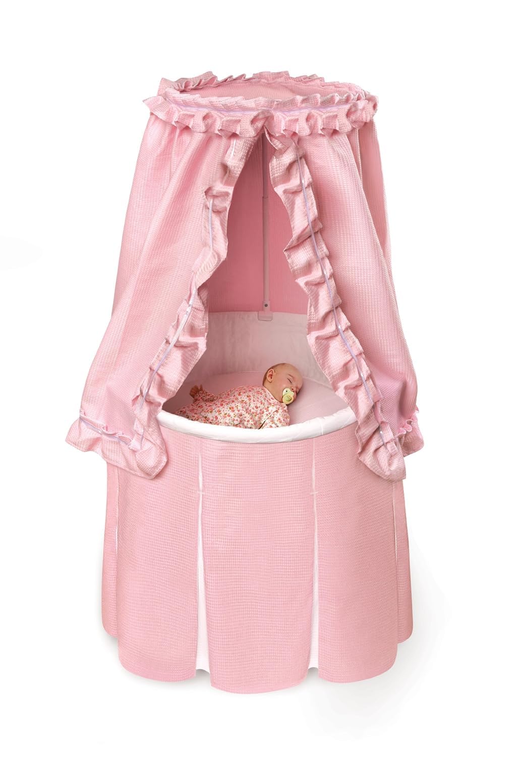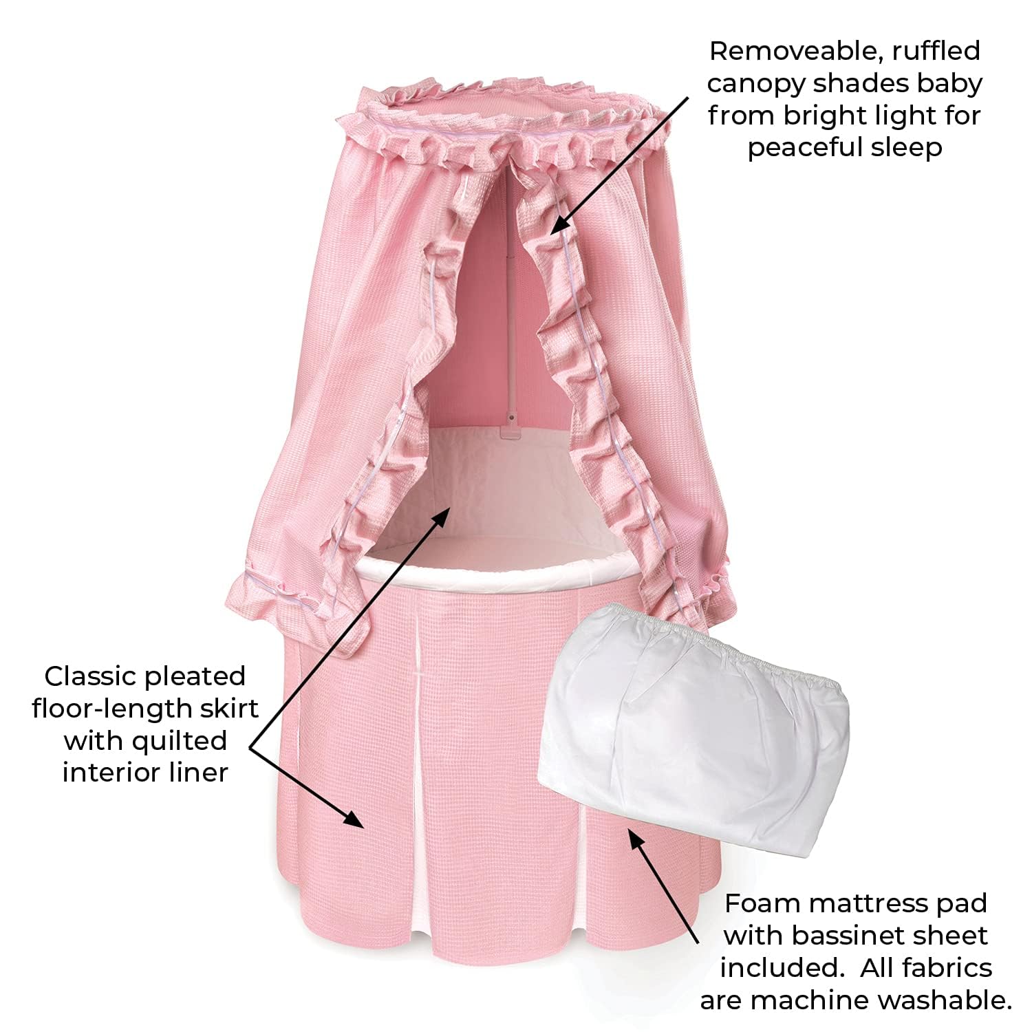 Badger Basket Empress Baby Bassinet and Bedside Sleeper with Bedding, Pad, and Storage Basket – Pink