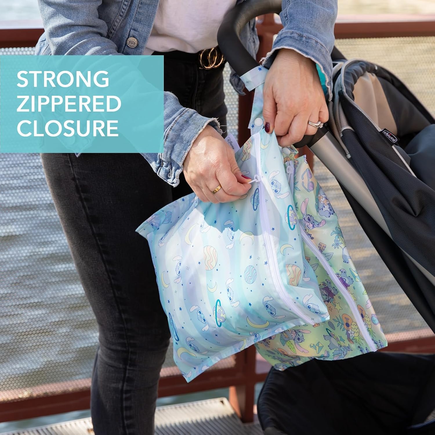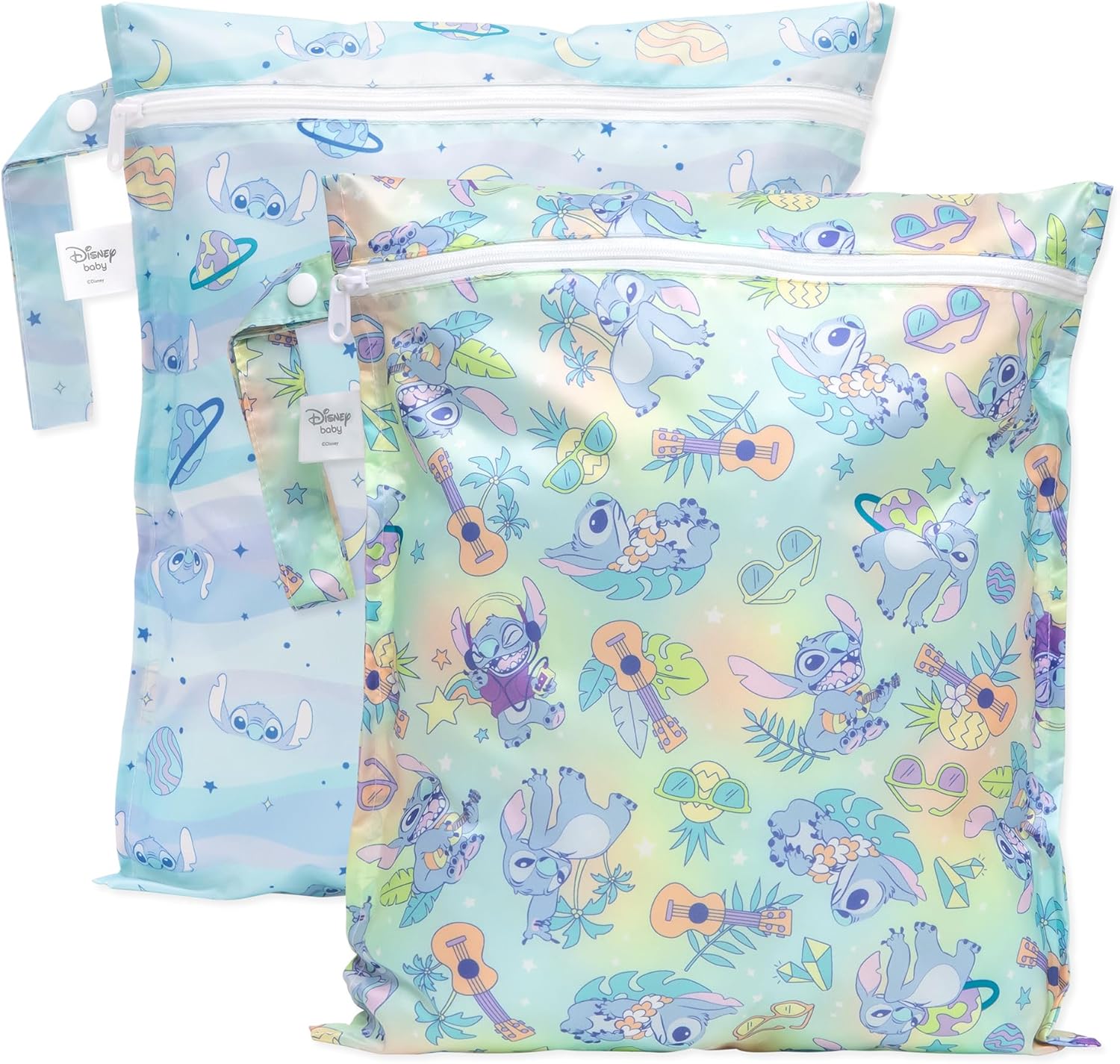 Bumkins – Waterproof Wet Bag – For Baby, Travel, Swim Suit, Cloth Diapers, Pump Parts, Pool, Gym, Toiletry, Strap to Stroller – Reusable & Easy to Clean – 2pk – Disney Stitch