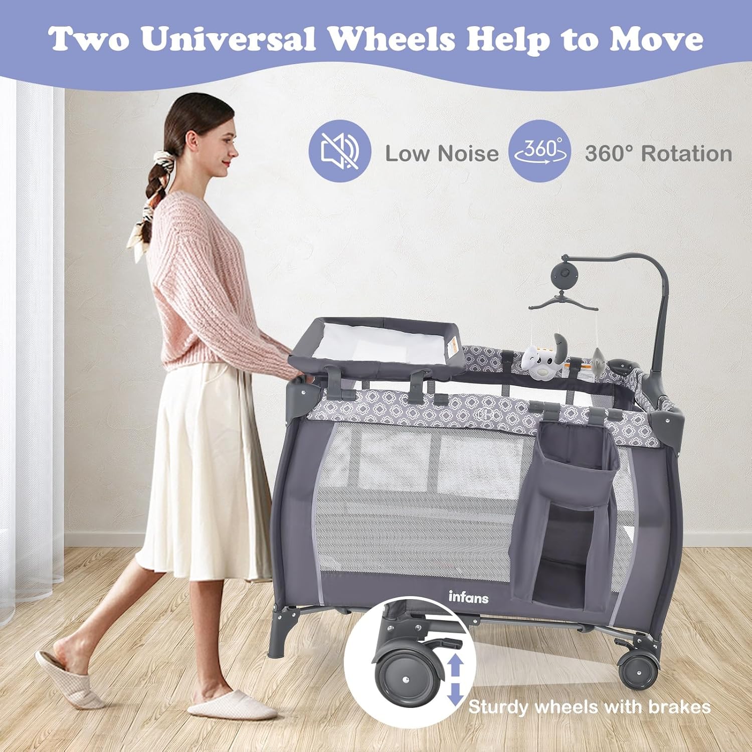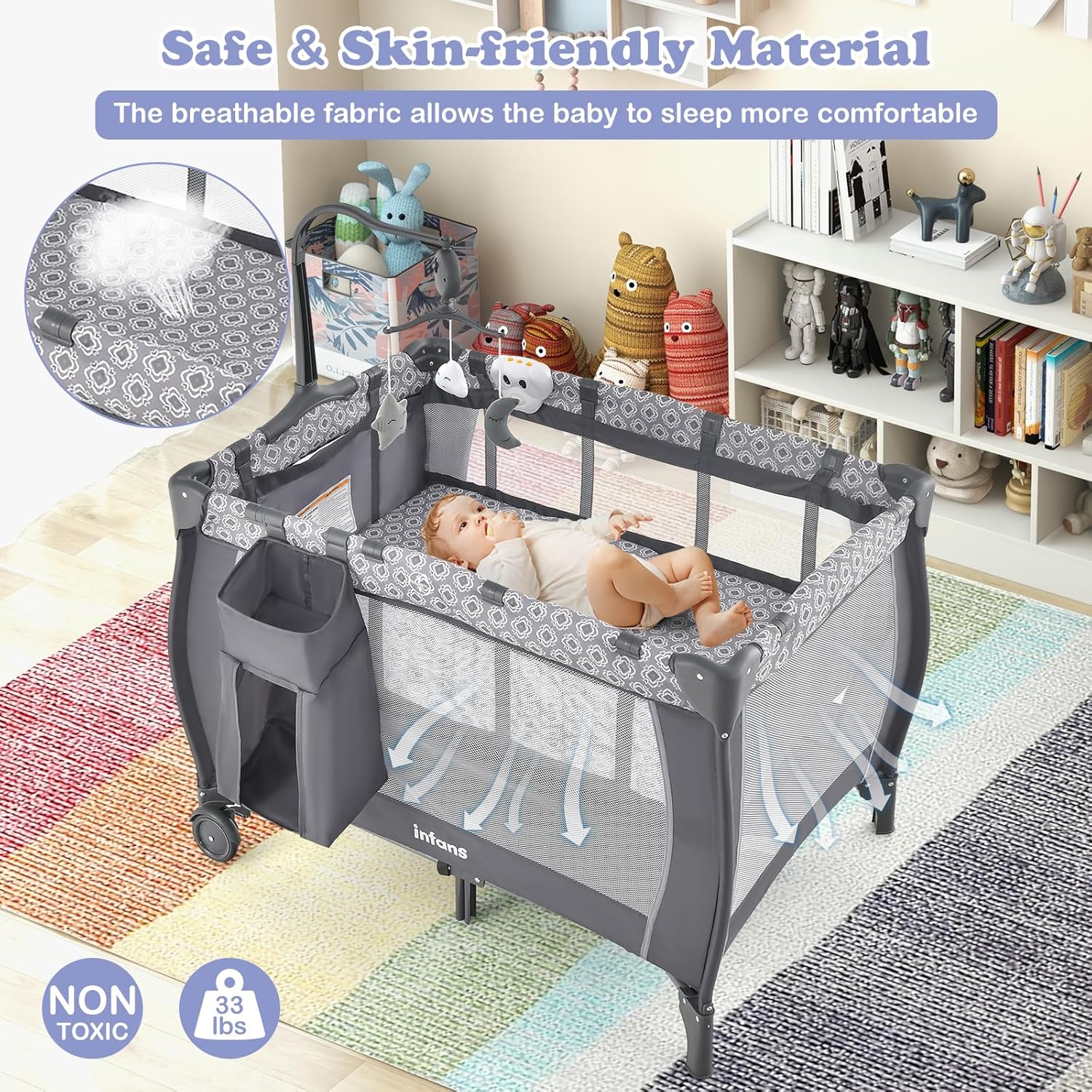 Safety is always a top priority when choosing a crib. INFANS 3-in-1 Portable Crib uses non-toxic, odourless materials to ensure a healthy and comfortable environment for your baby. A detachable diaper table provides daily care for your kids. This one also comes with a side pocket for some precious supplies. In addition, music box and toy hanging poles help infant sleep better and also provide entertainment during playtime. Overall, choose a 3-in-1 multifunctional crib with advanced features, combined with quality and safe materials, to provide peace of mind and practical parenting solutions for parents.