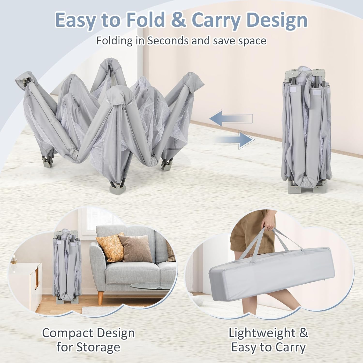 Fast Fold & Carry Design: This portable playpen is different from traditional folding playpens in that it does not require dismantling of components. It can be easily opened with just buttons, and can also be easily folded to fit into the accompanying carry bag. Weighing only about 14lbs/16.5lbs, it’s lightweight and perfect for holidays or trips