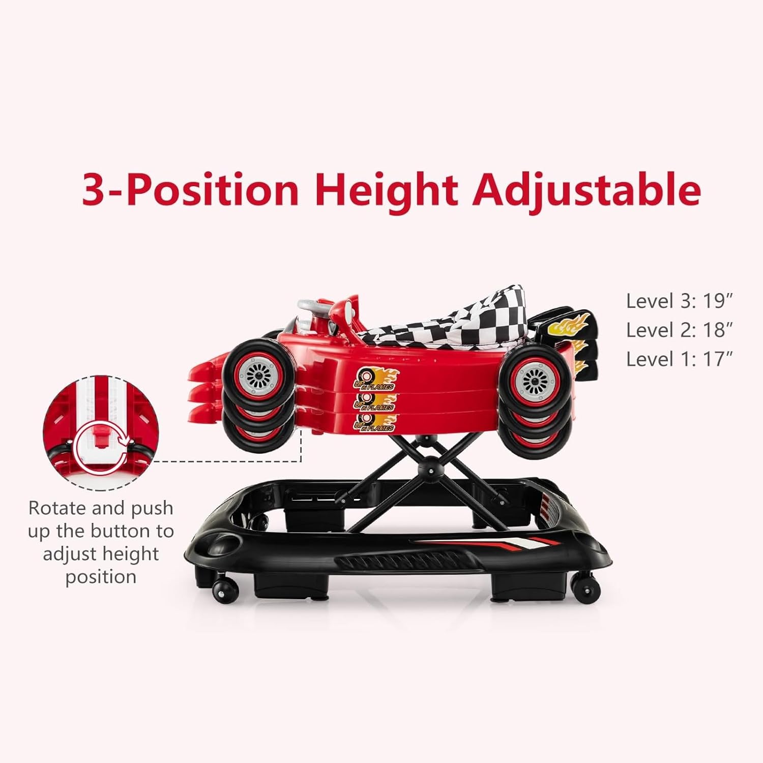 3 Adjustable Heights: The baby walker is designed for 3 adjustable heights 17”, 18”, 19” to suit the height of boys and girls. The rear wheel has a deceleration function to ensure safety