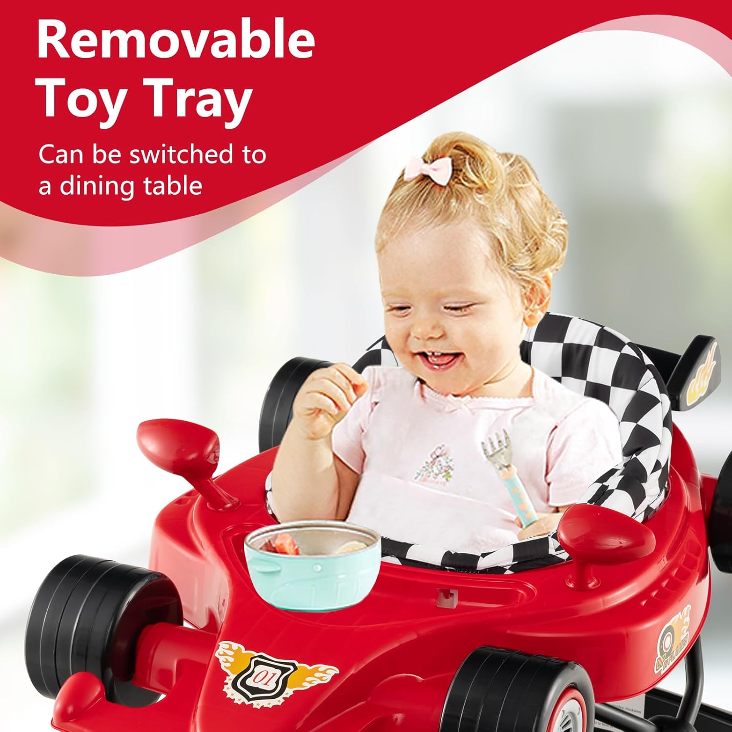 3 in 1 Convertible Baby Walker: INFANS toddler walker can be easily converted into activity walker and push-behind walker. The seated walker provides stable support and helps them practice their balance.The seat is equipped with a detachable tray for easy feeding