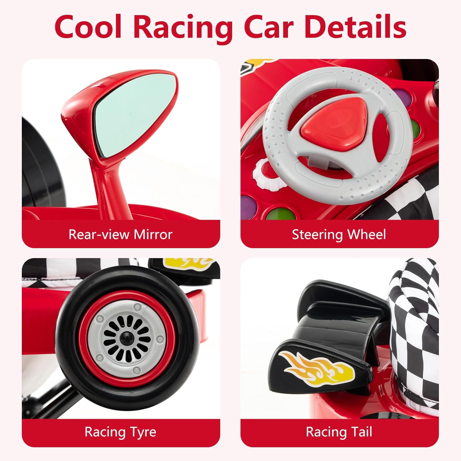 Fun Activity Center: The toddler activity center has a cool racing car appearance, and equipped with steering wheel, gear lever, rearview mirror and light buttons to satisfy your child’s curiosity for exploration and early learning. Requires 2 AA batteries (not included)