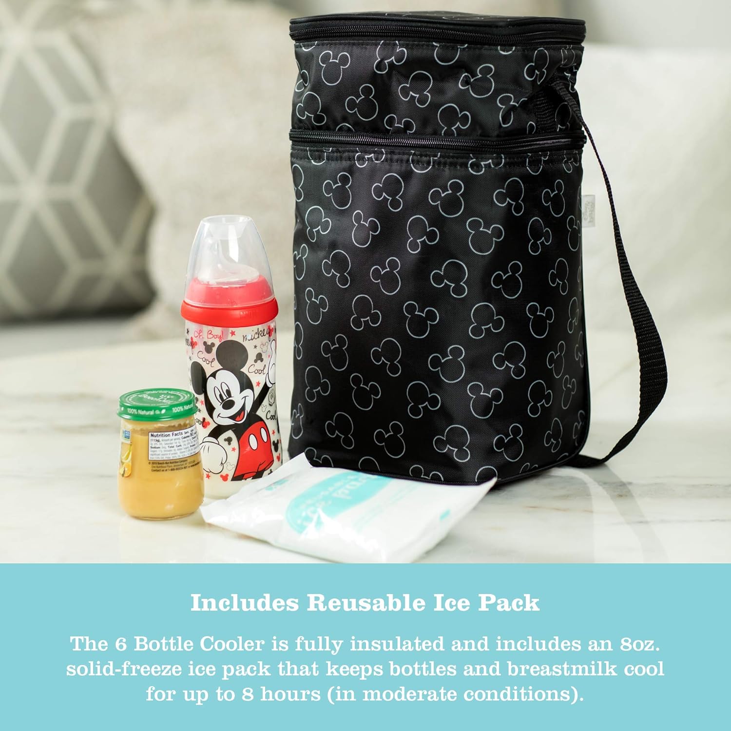 J.L. Childress Disney Baby Six Bottle Breast Milk Cooler Travel Bag – Insulated Baby Bottle Storage Bag, Portable Organizer Pack for Breast Milk, Use for Daycare or On the Go – Mickey Mouse
