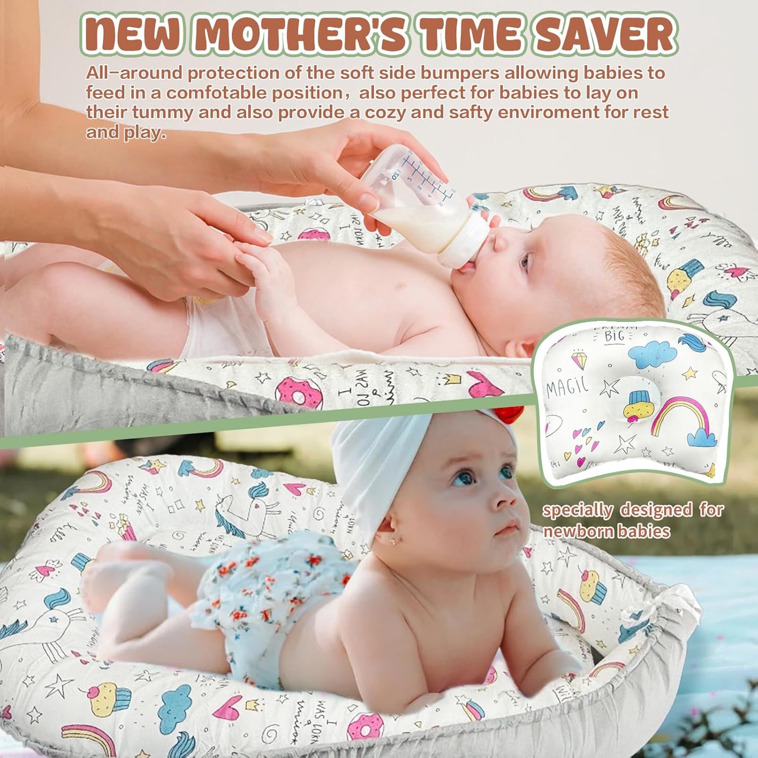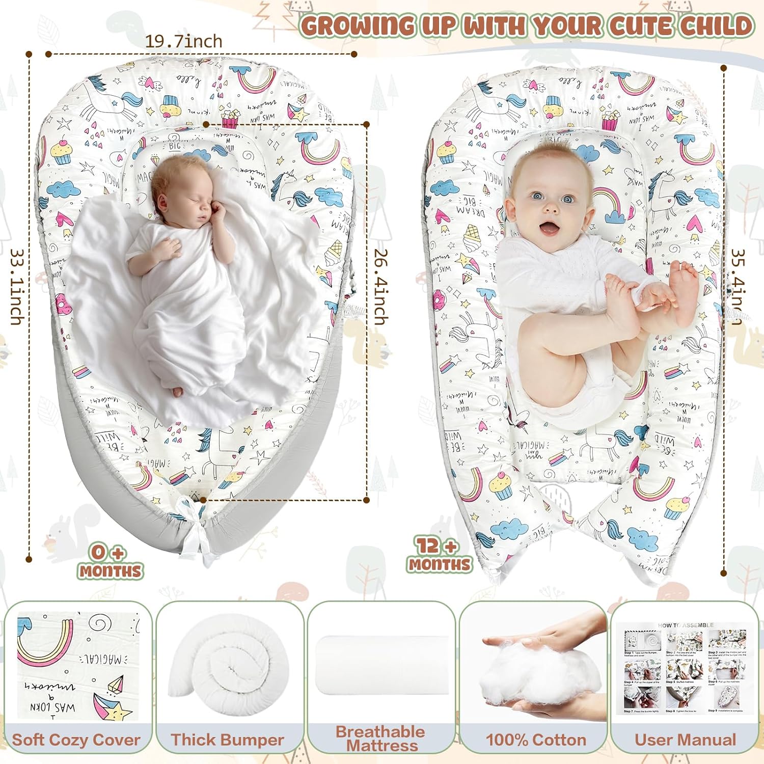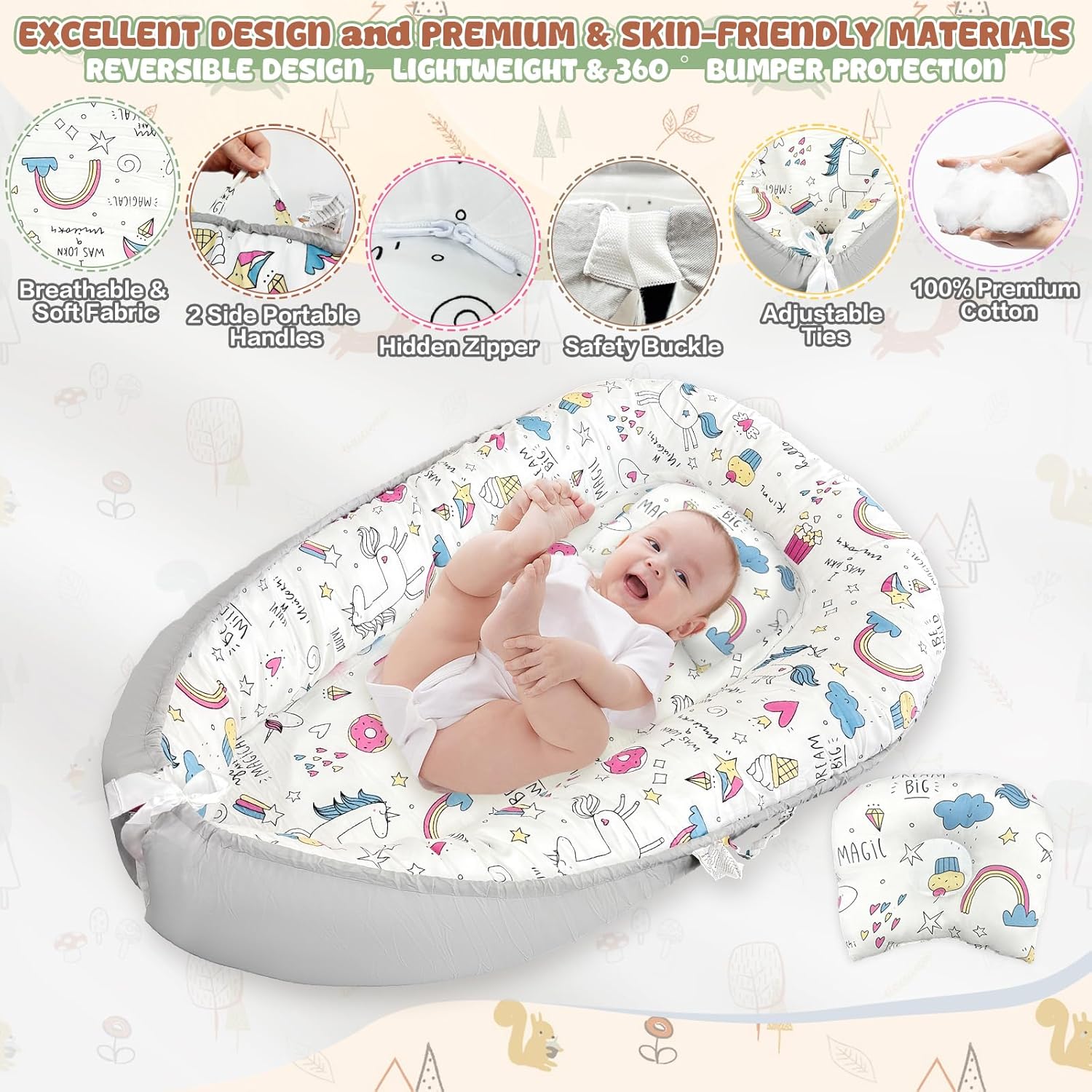 JIFTOK Baby Nests Lounger for Newborn, Snuggle Bassinet for 0-24M, Breathable Portable Co Bed, Baby Essentials Adjustable Infant Soft Cotton Loungers for Home & Travel -Ice Cream