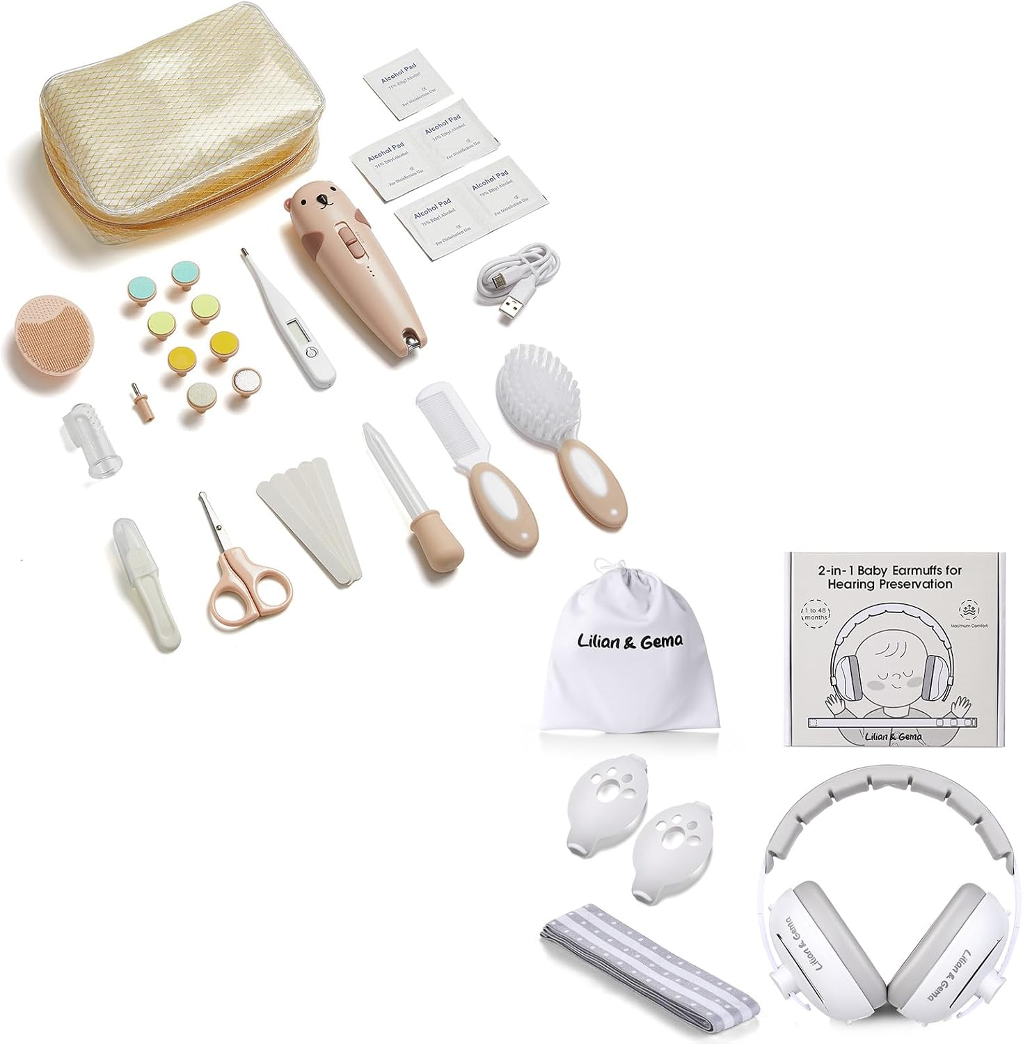 Lilian&Gema Baby Healthcare and Grooming Kit & 2-in-1 White Baby Ear Muffs Noise Protection