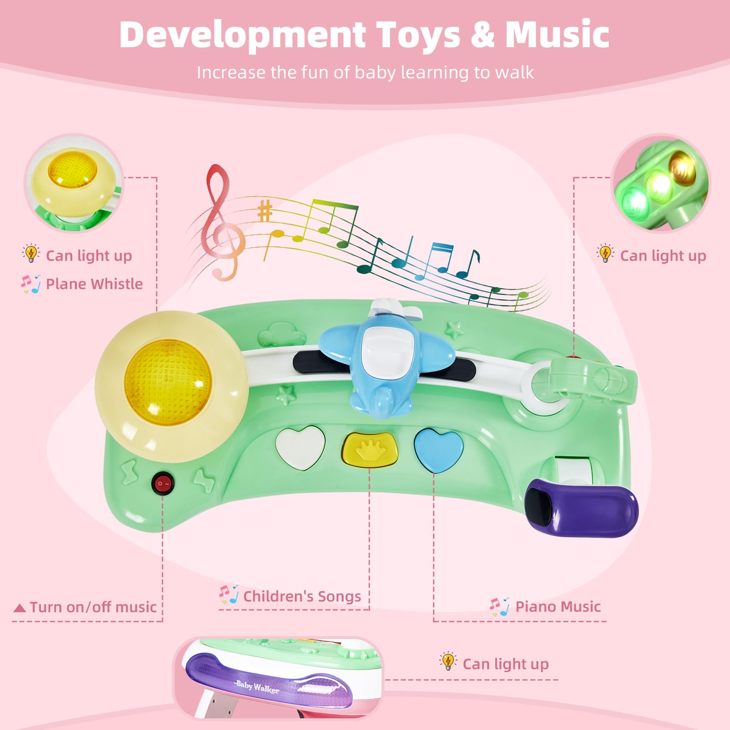 Music and Lights Baby Walker with Wheels,5-in-1 Baby Activity Center with Removable Toys and Music Bouncer,Adjustable Height Baby Walkers for Boys Girls Babies 6-18 Months