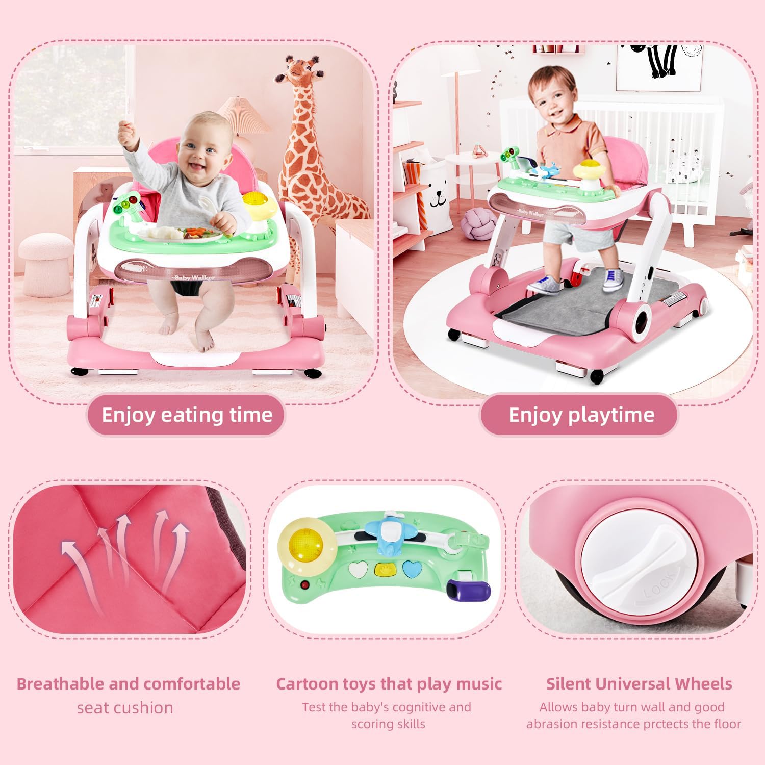 [5-in-1 Baby Walker]: The Baby Walker has 5 modes: Walk, Bouncer, Push, Eating,BouncerMusic. Mom can choice mode according to your baby needs. Baby walkers can meet the needs of babies at all stages of 6-18 months.