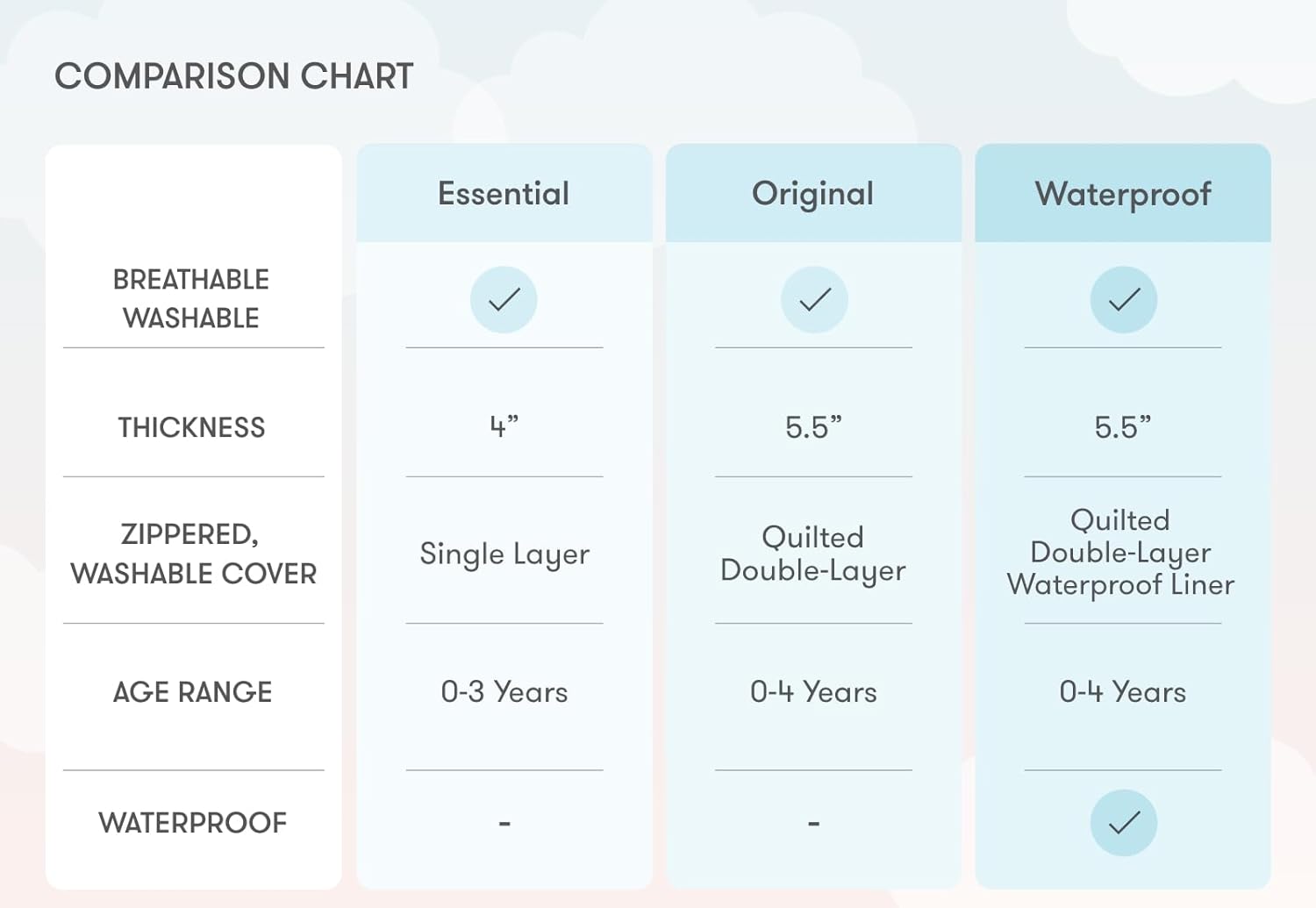 COMPLETELY WASHABLE: The crib mattress that’s completely washable from cover to removable core. Easily wash away accidents, dust mites and allergens for a cleaner, healthier, hypoallergenic sleep. Simply throw the cover in the wash and rinse the core in the shower or tub.
