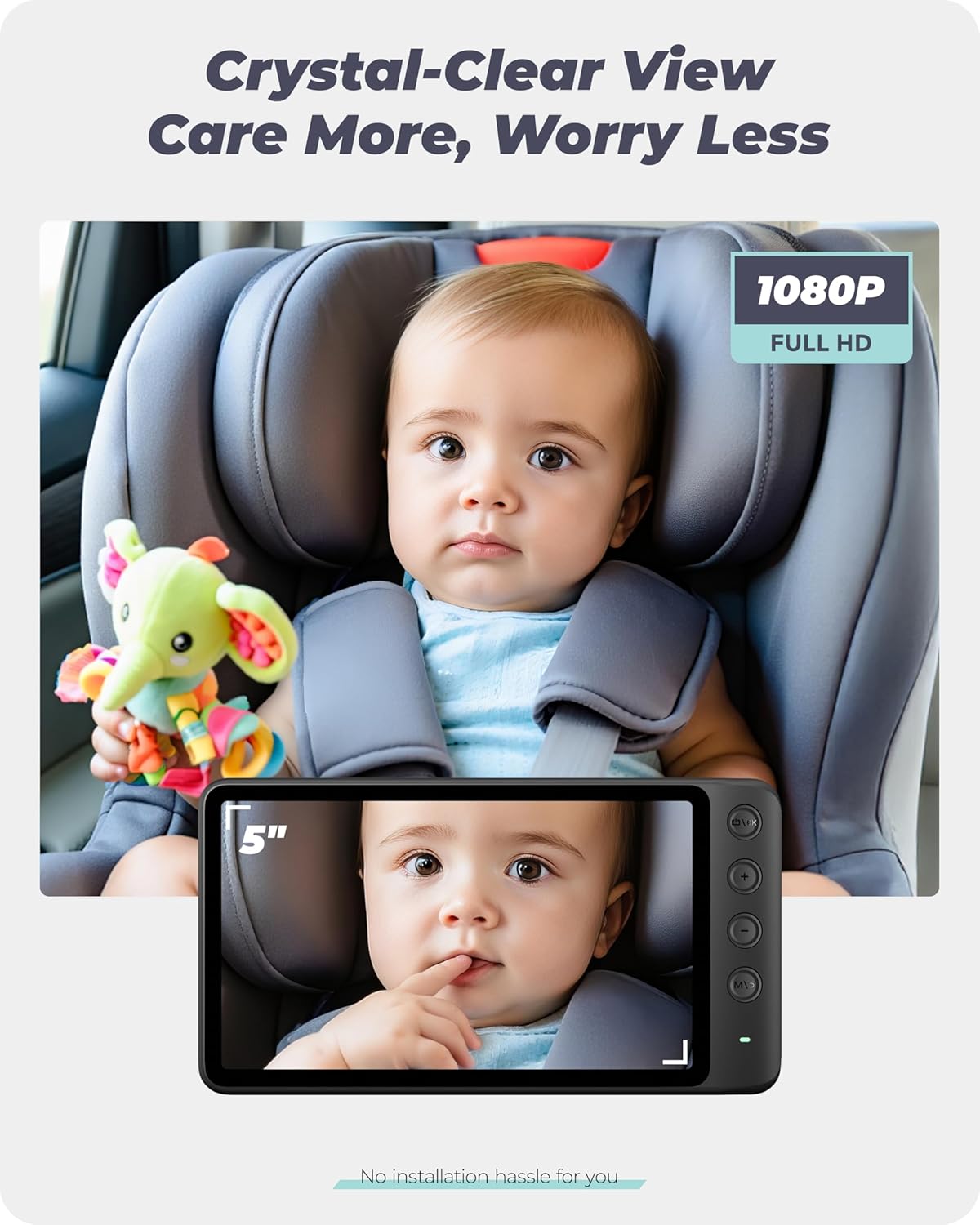 NO.1 Magnetic Baby Car Camera, 5” 1080P IPS Magnetic Mount Monitor, Auto Night Vision, 360° Rotation Car Camera for Baby with Zoom & Mirror Mode, USB-Powered Baby Monitor for Rear Facing