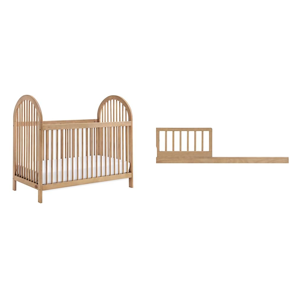 Oxford Baby Everlee Modern High Arch 3-in-1 Convertible Island Baby Crib with Round Spindles, Honey Wood