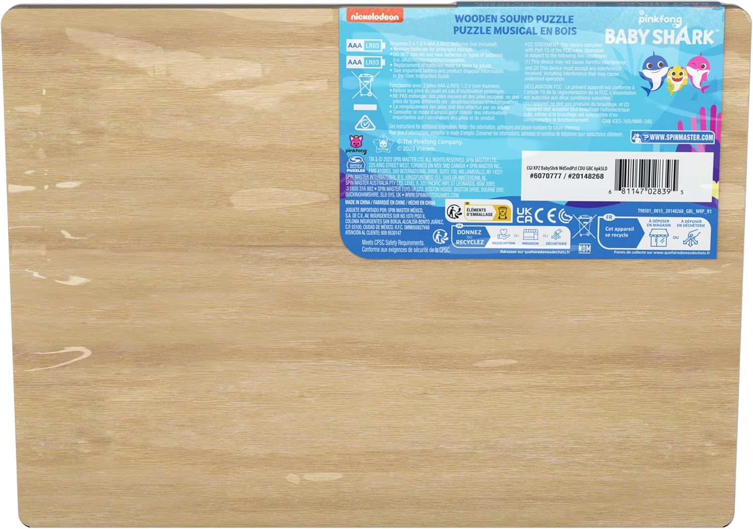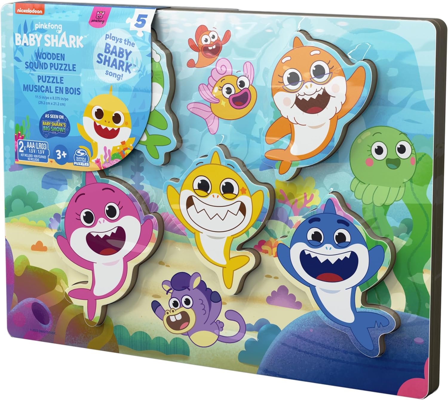 Spin Master Games, Pinkfong Baby Shark Chunky Musical Wooden Sound Puzzle, Plays Baby Shark Song, Kids Puzzle, Easy Activity Toy for Preschoolers, for Kids & Family, 5 Pieces, for Ages 3 & Up