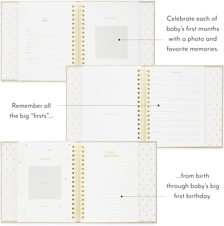 EXPANSIVE BOOK DETAILS FOR ALL YOUR MEMORIES – With 84 pages, this baby book provides plenty of room to capture every special moment. Sized at 8.25 x 9.5 inches, it’s the perfect compact yet spacious design for storing all your baby’s early memories without taking up too much space.