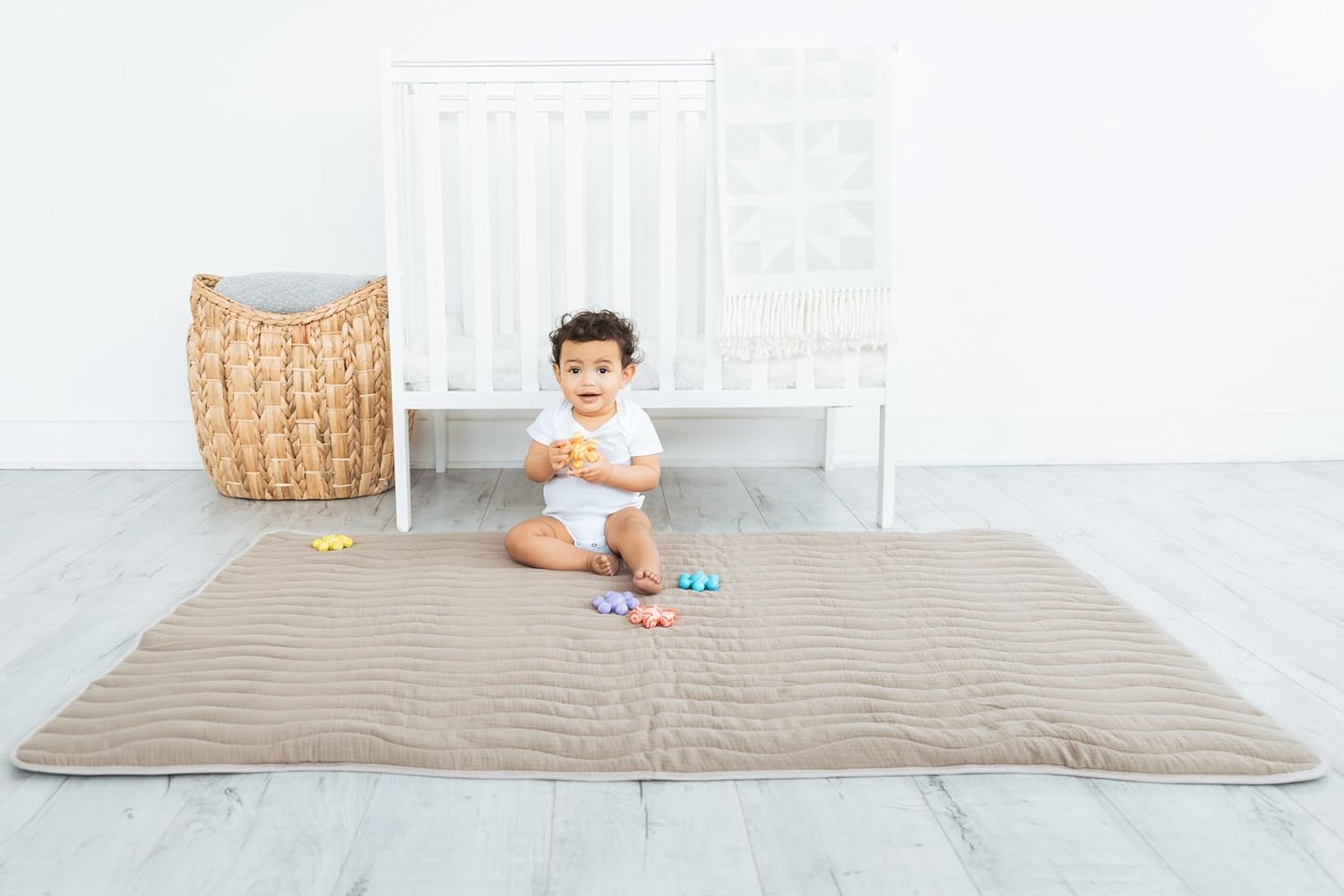 Give your little one a cozy and safe space to play, crawl, and explore with the Ubbi Baby Floor Mat. Thoughtfully designed with a thick foam pad for superior comfort, this play mat features an ultra-soft 100% cotton muslin cover that is gentle on baby’s skin. This machine-washable cover ensures easy cleaning, while the non-slip foam cushion backing keeps the mat securely in place on any floor surface. This large baby play mat measures 40.5″ x 56.5″, providing ample space for baby play time, crawling, tummy time, changing clothes, diaper changes, sitting, baby’s first steps, and more. Plus, the foldable design and easy-to-clean washable fabric cover make it easy to store or take on the go. Available in four stylish colors—Fig Blossom Pink, Open Water Blue, Lily Pad Green, and Modern Gender-Neutral Taupe—this versatile mat blends seamlessly into any nursery or living space. Designed with parents and children in mind – providing a functional, innovative solution for modern parents. Playmat Size: 40.5” x 56.5”