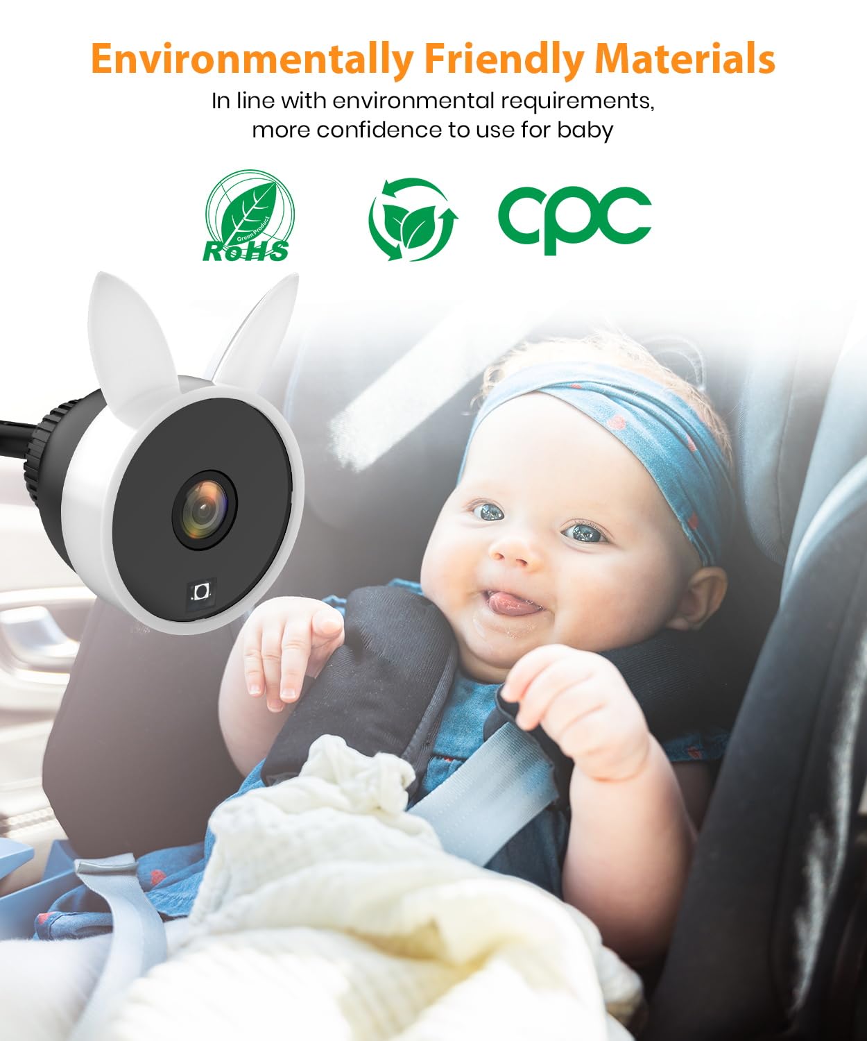 360° Rotating Cute Camera: Cute design camera easily calms baby, more suitable for mums travelling alone with kids; 360° angle adjustment function of monitor and camera means mum no longer has to frequently look for an angle to see her child or dangerously turn around to check