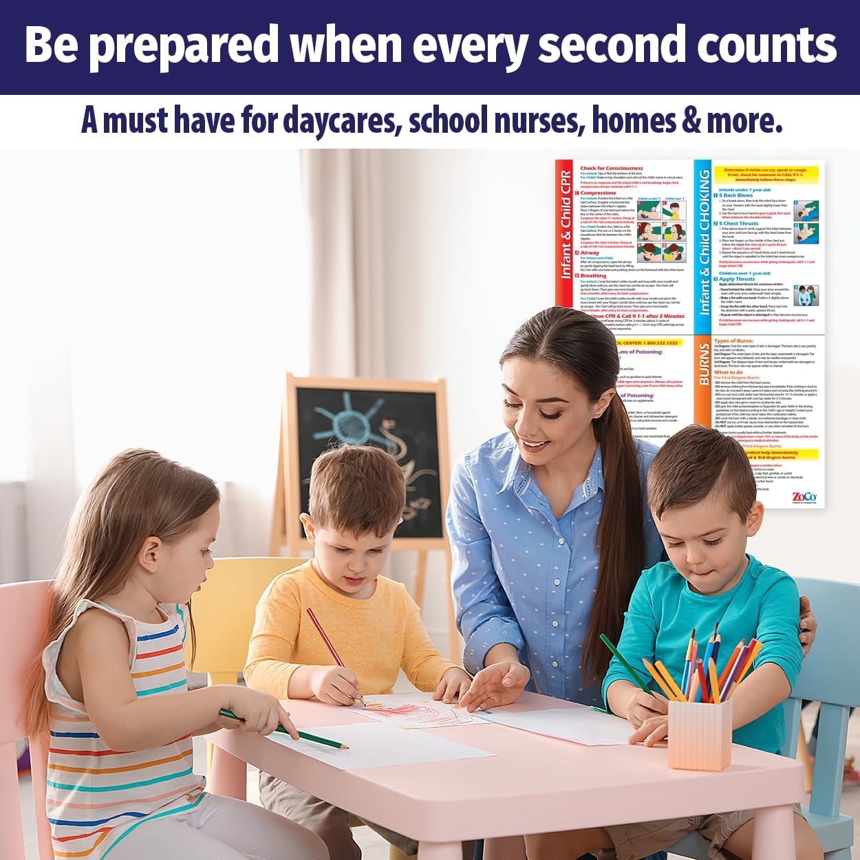ZOCO – Infant & Child First Aid Poster – Home Daycare Essentials – Laminated 17×22 – CPR, Choking, Poison & Burn Chart – Emergency Safety Sign for Childcare & Infant Rooms