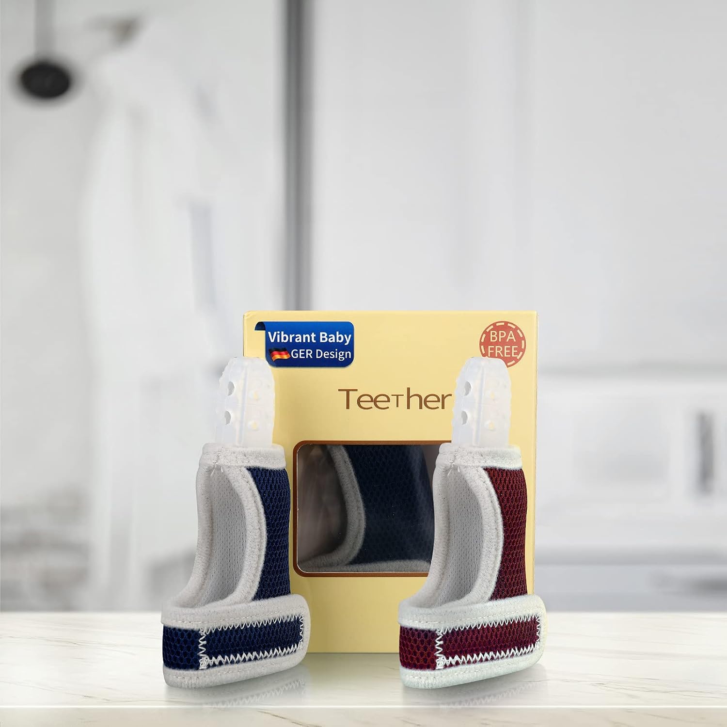 Practical design: the massage particles on the silicone surface can effectively massage the children’s gums, satisfying their needs for tooth massage, and also help them to get rid of the habit of sucking thumbs; The wristband design prevents the product from falling off the child’s hand, so it can be applied in various occasions; At the same time, the strap design can also adjust the tightness according to the child’s hand shape