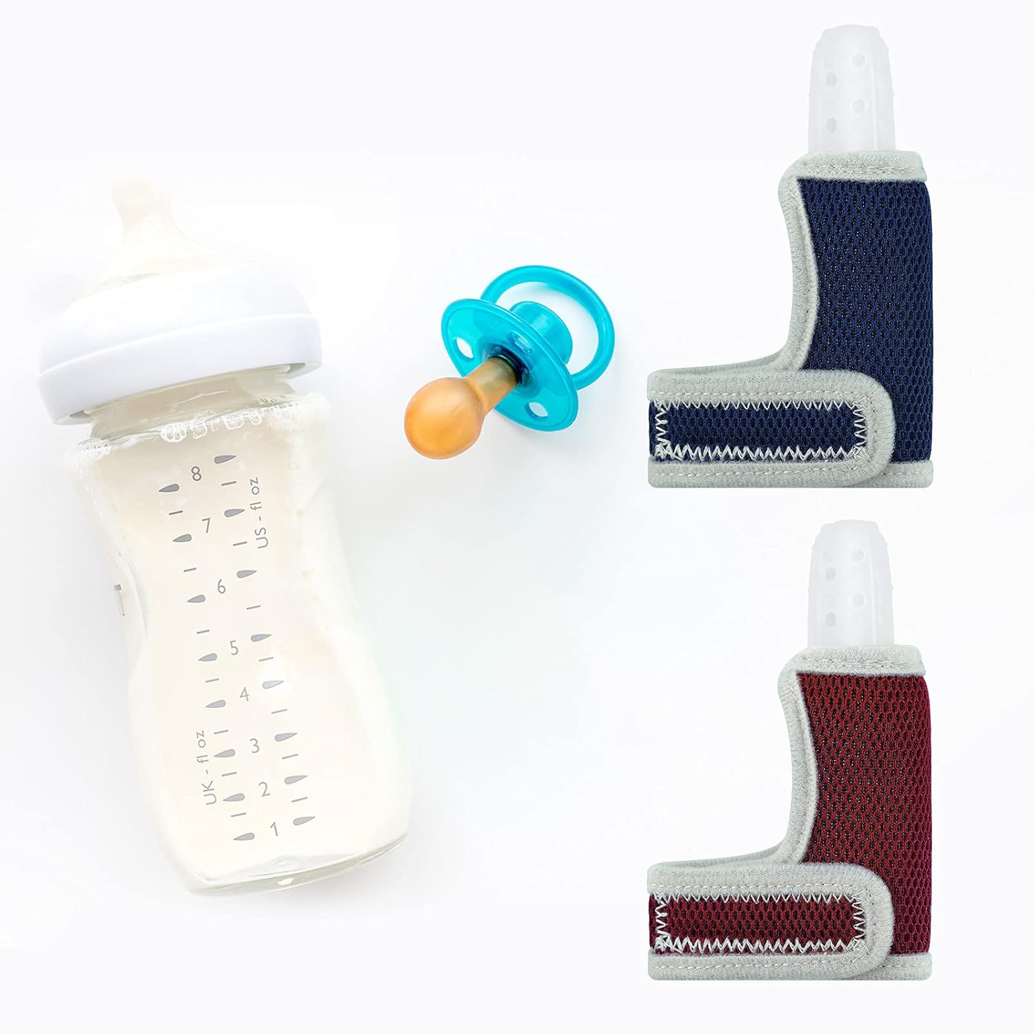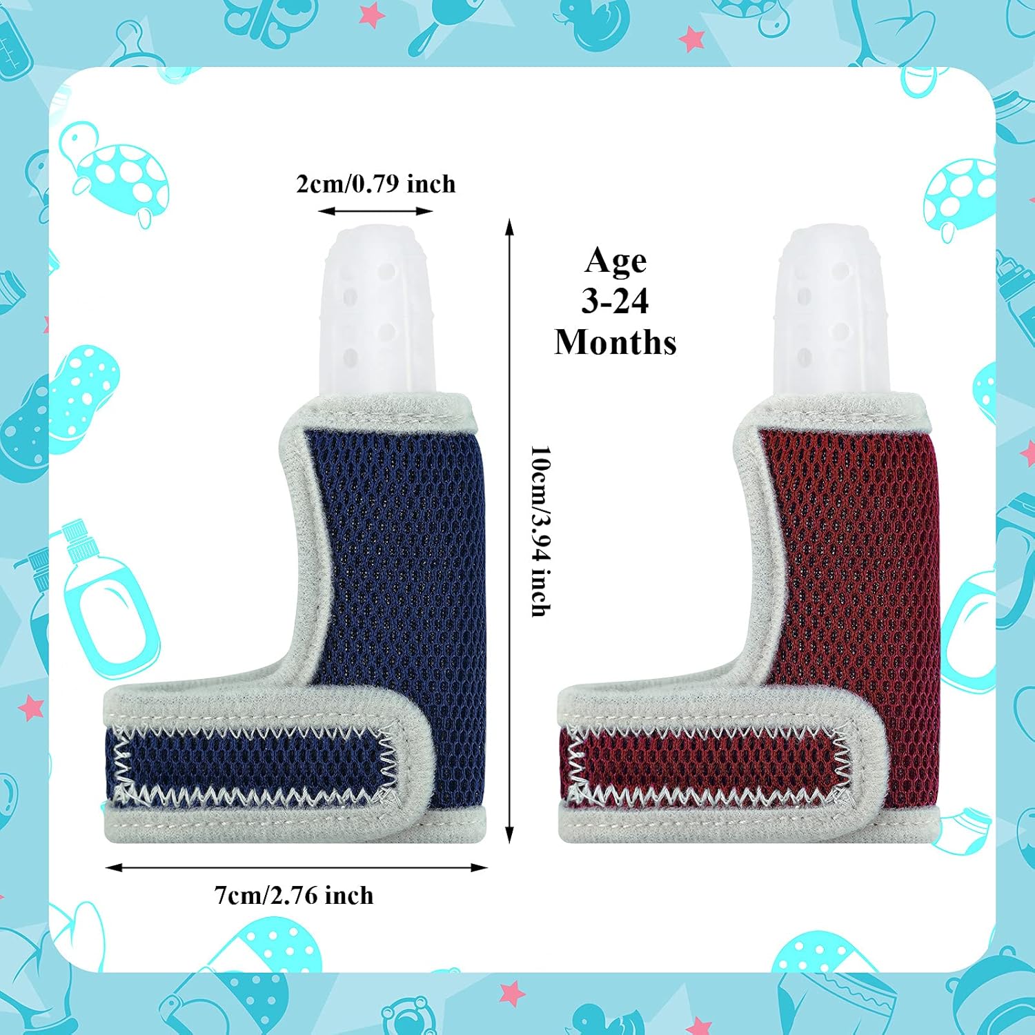 2 Pieces Silicone Toddler Baby Finger Guard with Breathable Wrist Band Thumb Kit to Prevent Children from Sucking Fingers (Blue, Red)