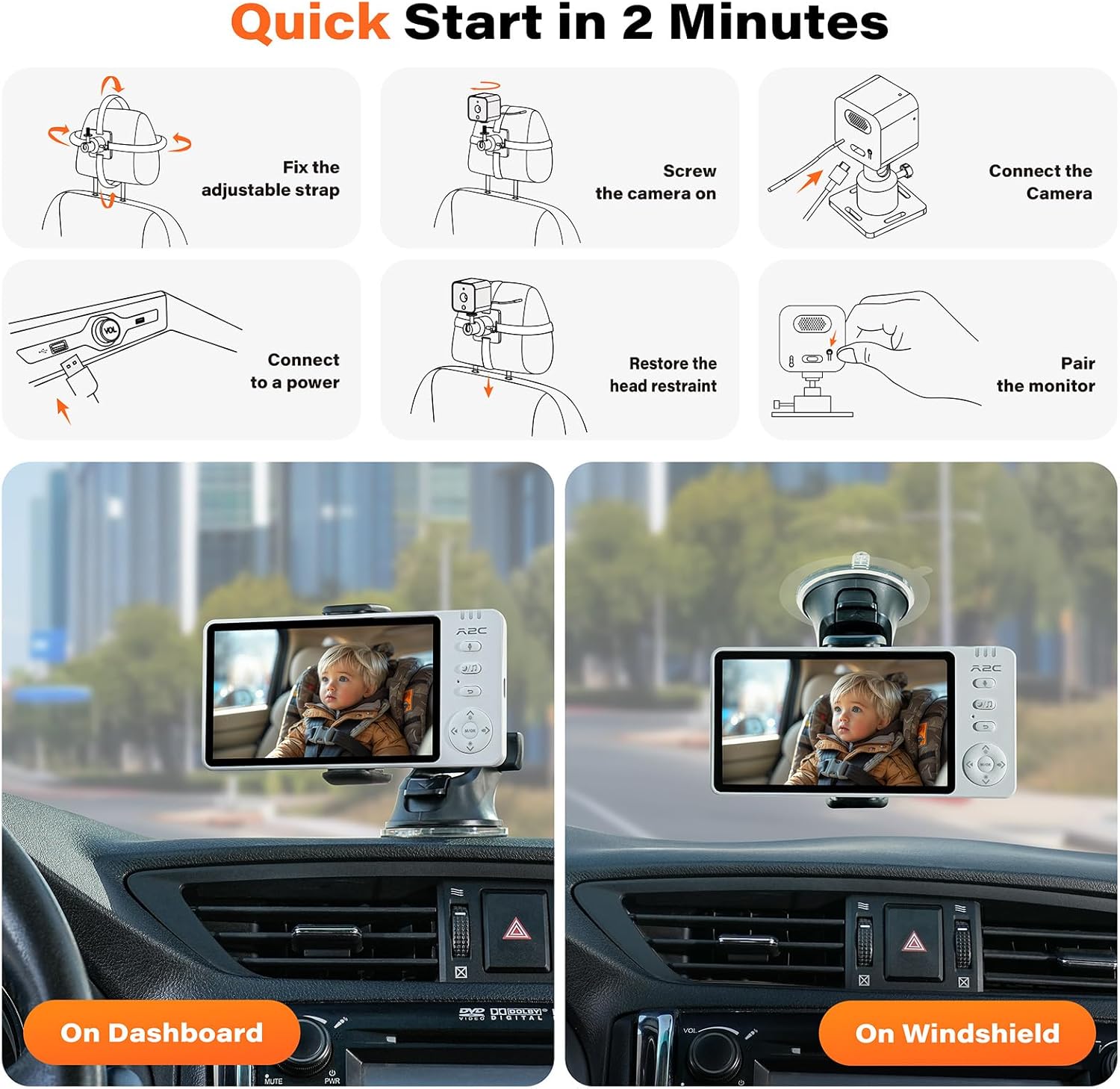 2-in-1 Design: The A2C car baby camera features a versatile dual-purpose design, seamlessly transitioning between car and home use to provide comprehensive monitoring. A perfect and practical gift for Mother’s Day, Children’s Day, Father’s Day, Valentine’s Day, birthdays, or Christmas