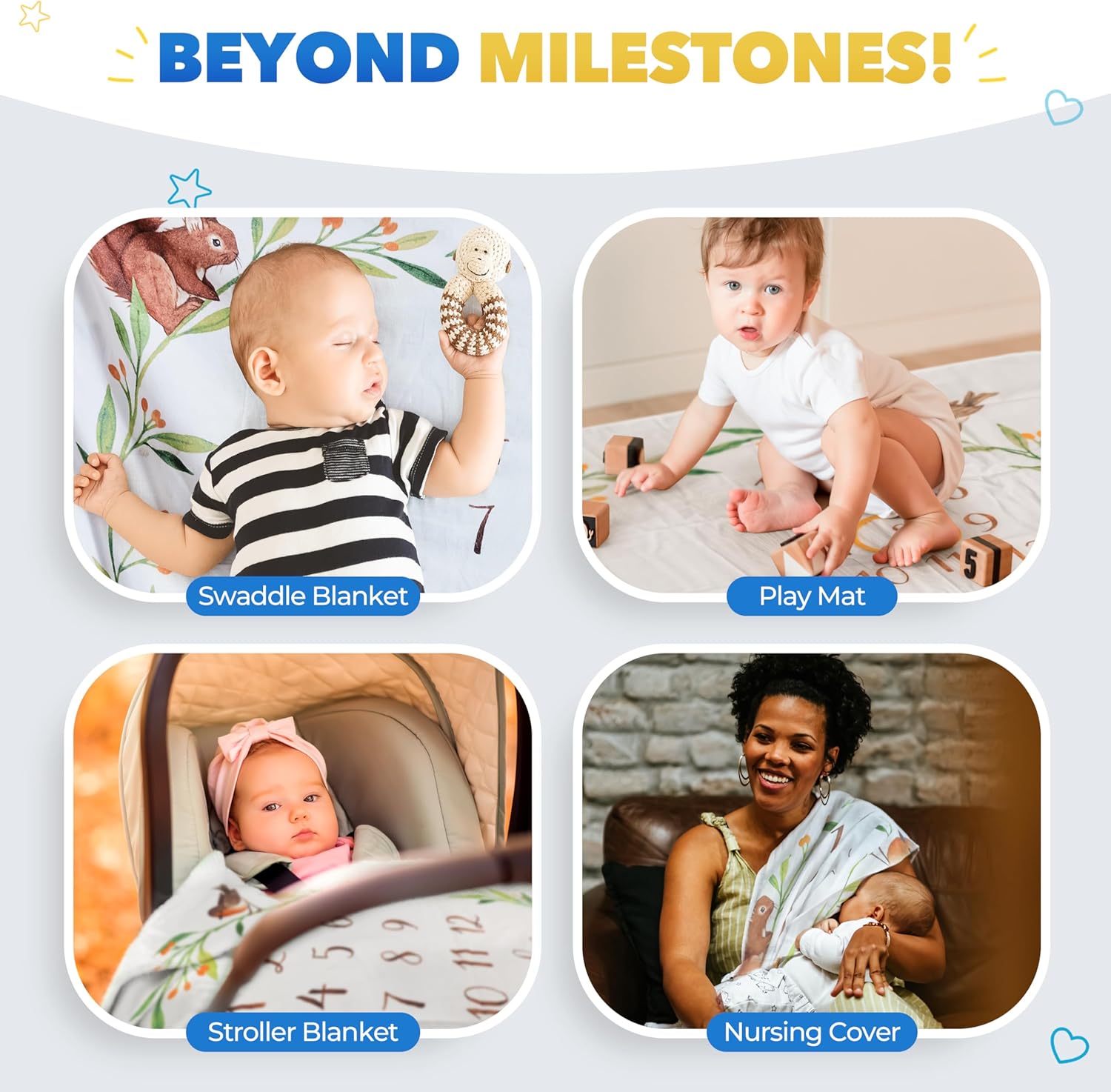 EASY TO CLEAN Babies are messy! Our hypoallergenic weeks & months blanket is machine washable, so feel free to use it as a swaddle blanket, nursery receiving blanket, stroller blanket, nursing cover, stroller cover, or even a play mat. It’s more than just a milestone blanket – it’s a newborn essential!