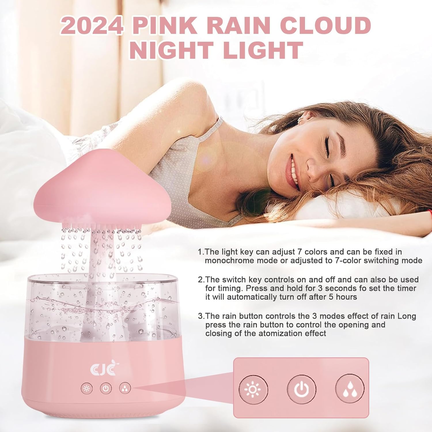 The CJC Cloud Humidifier is designed as a 3-in-1 device, serving both as a humidifier/essential oil diffuser and night light.