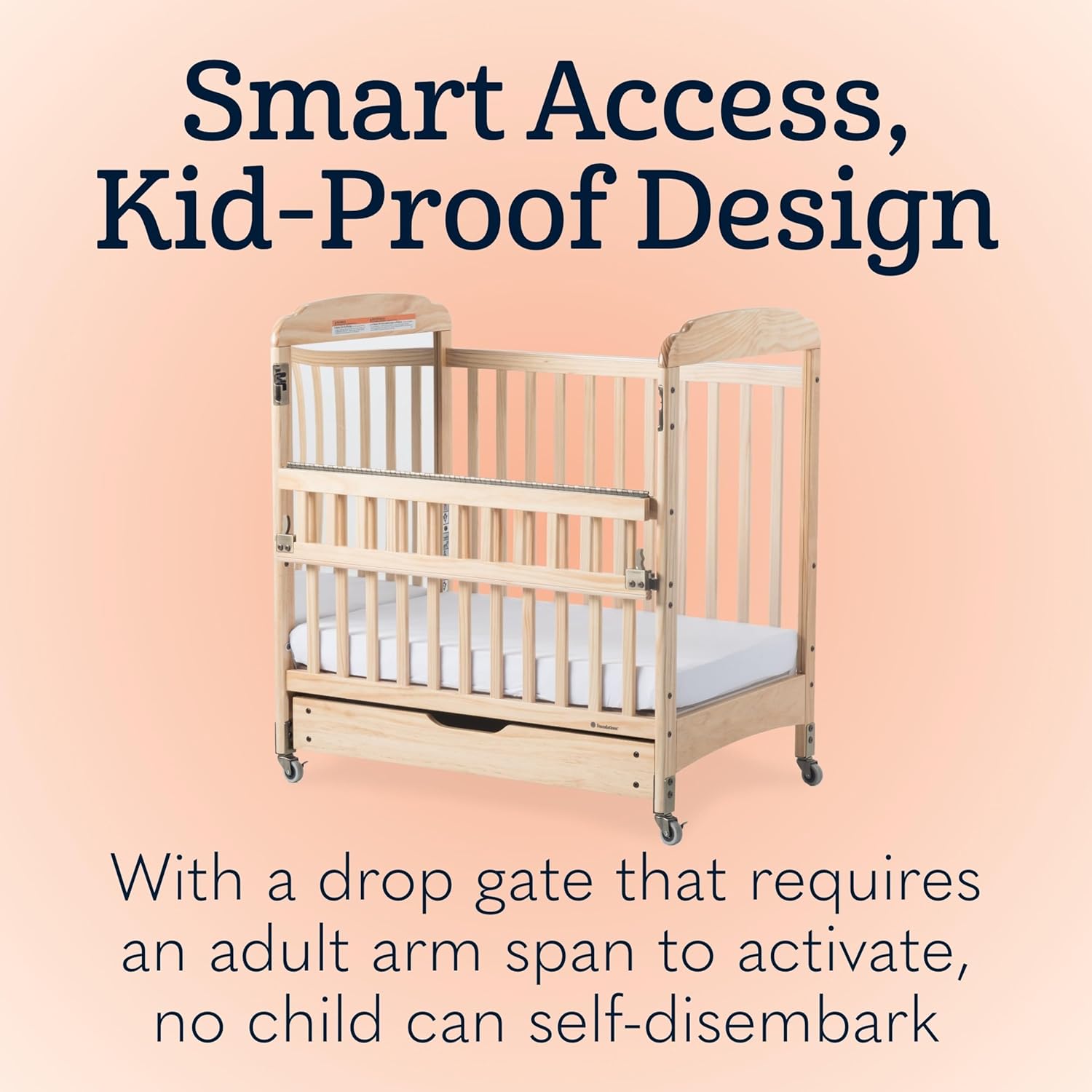 Easy Access – The innovative drop gate allows for quick and easy access to the baby while reducing back strain, making it ideal for frequent use in childcare settings.