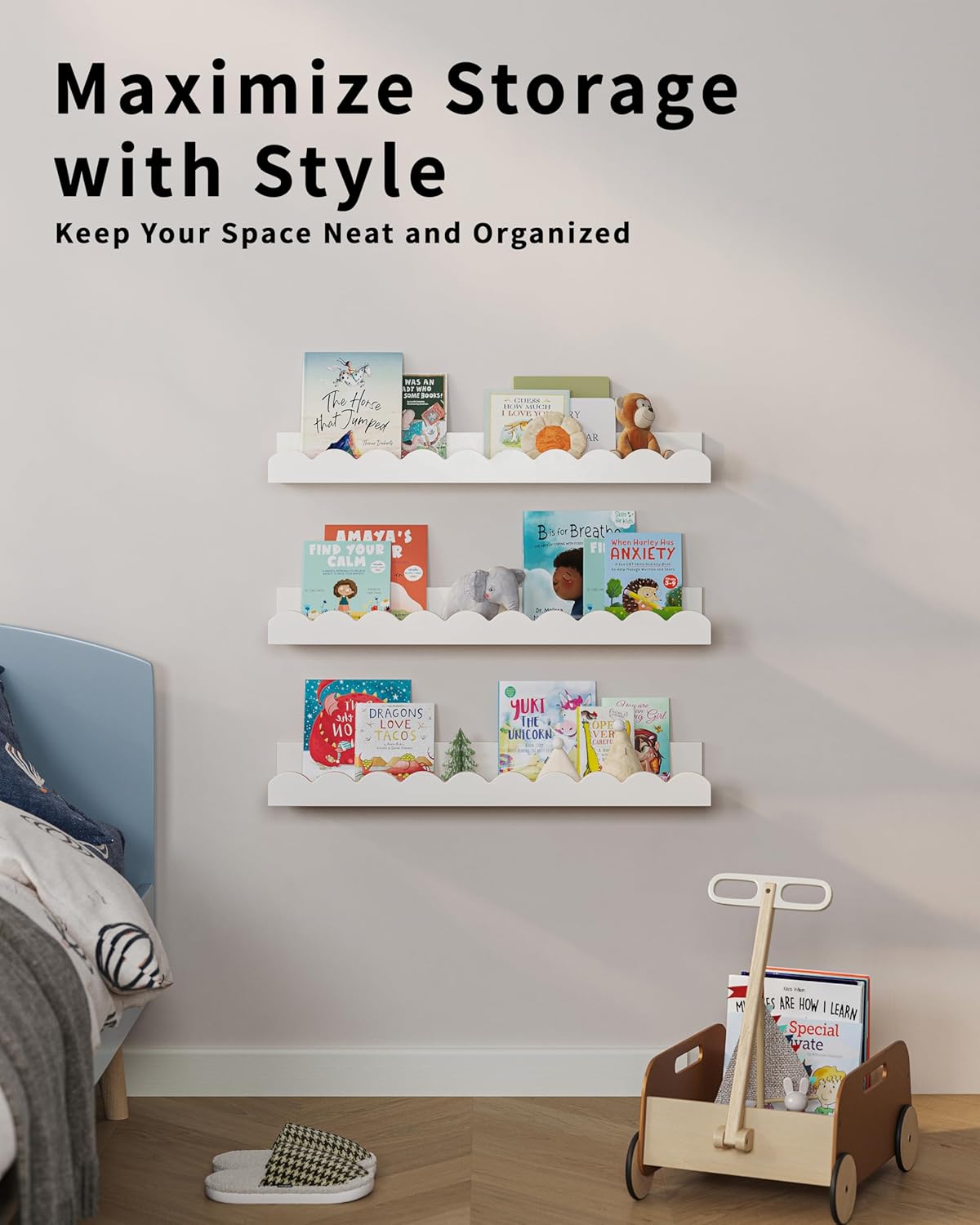 Efficient Organization: Helps parents keep books, toys, and decor neatly organized, creating a clutter-free space for their children