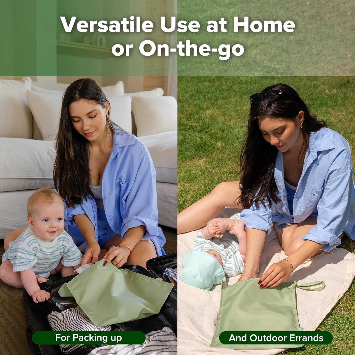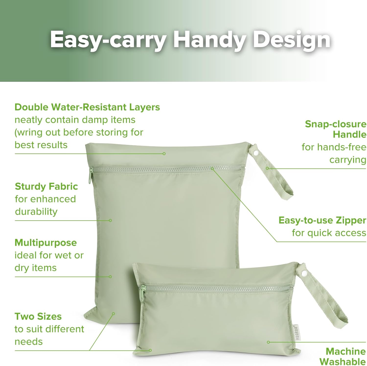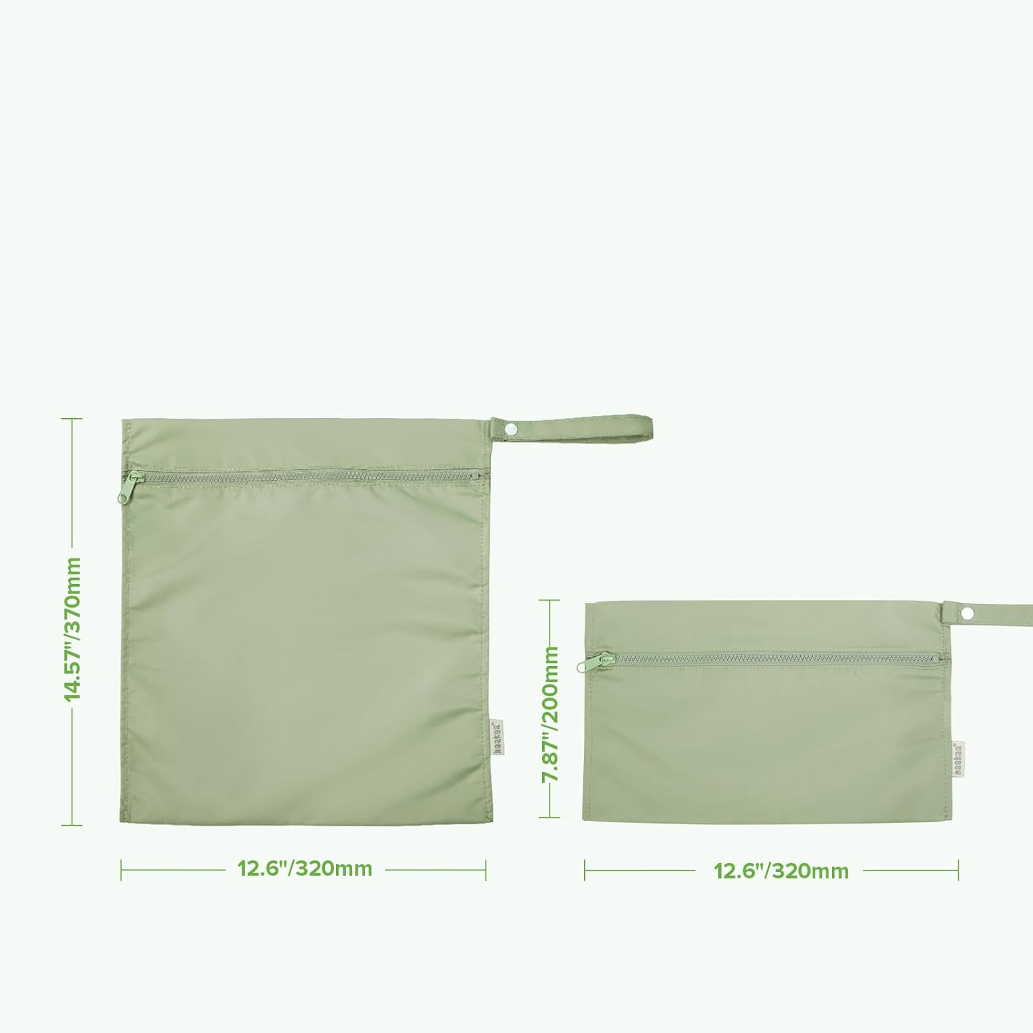 haakaa Waterproof Wet Bags for Baby Wet Dry Bags for Cloth Diaper, Swimsuit & Travel, 2pcs, Grass