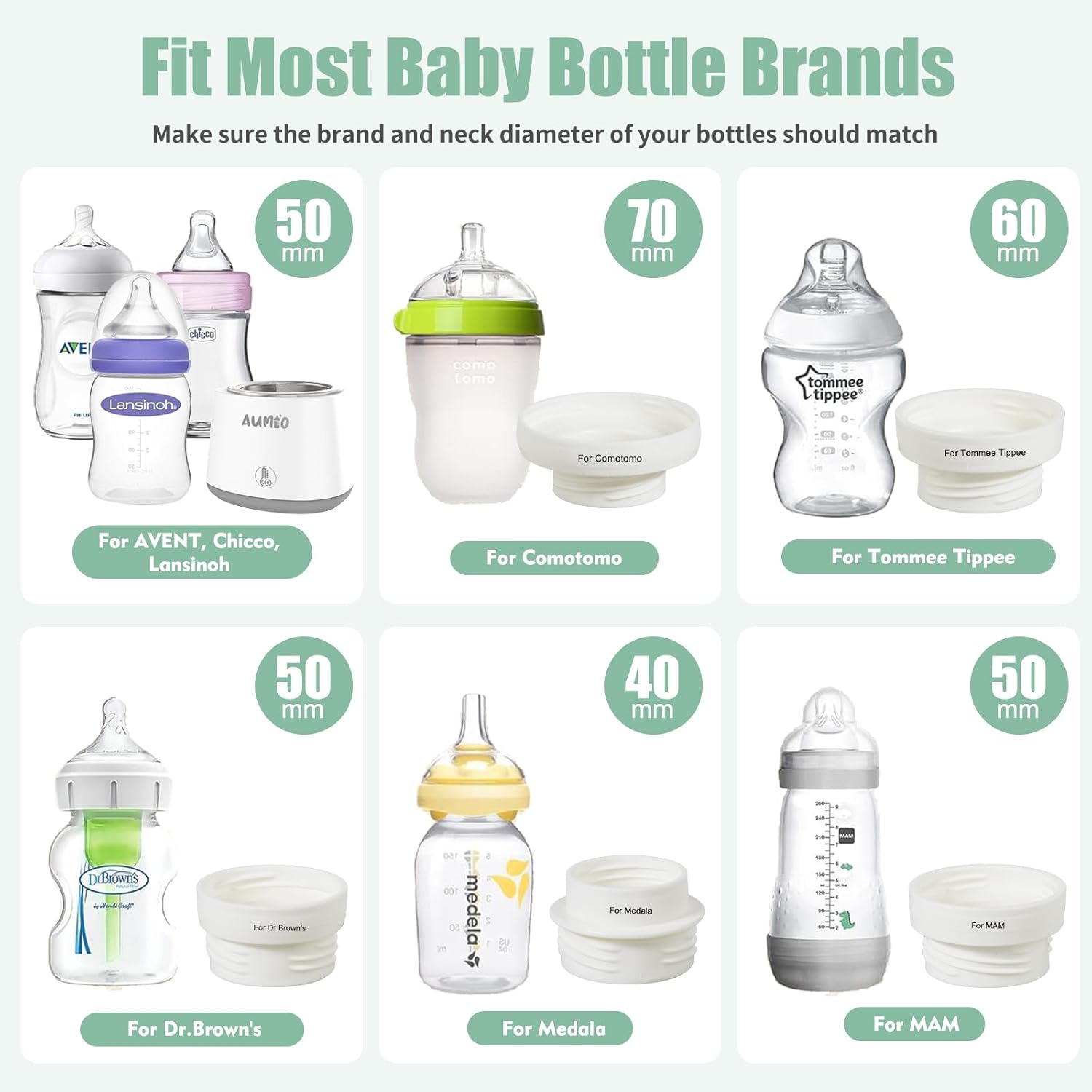 Multi-Brand Compatibility: AUMIO Portable Bottle Warmer comes with 5 adapters and a detachable milk powder container to cater to the needs of various mothers. This baby bottle warmer allows for direct screwing of compatible bottles such as AVENT, Chicco, and Lansinoh 50mm, while additional adapters cover Dr. Brown’s and Medala 40mm, Comotomo and Boon 70mm, MAM/Pigeon (glass) 50mm and Tommee Tippee 60mm, ensuring versatility and convenience.