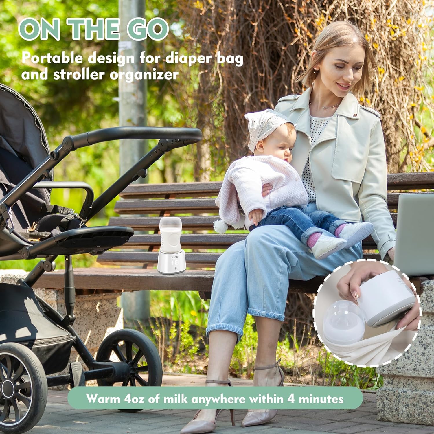 Quick Heating & Memory Function: With the 60W power output, the bottle warmer for breastmilk heats 4oz of milk to 98℉ in only 2 minutes. The portable bottle warmer for travel has 4 temperature selections of 98℉(37℃), 104℉(40℃), 113℉(45℃), and 122℉(50℃). Easy to use and specifically intimate design beep prompts when milk heated completed—suggestion warm breast milk to 98℉, and formula milk to 104℉. The memory function can help mom save the trouble of frequently adjusting the temperature.