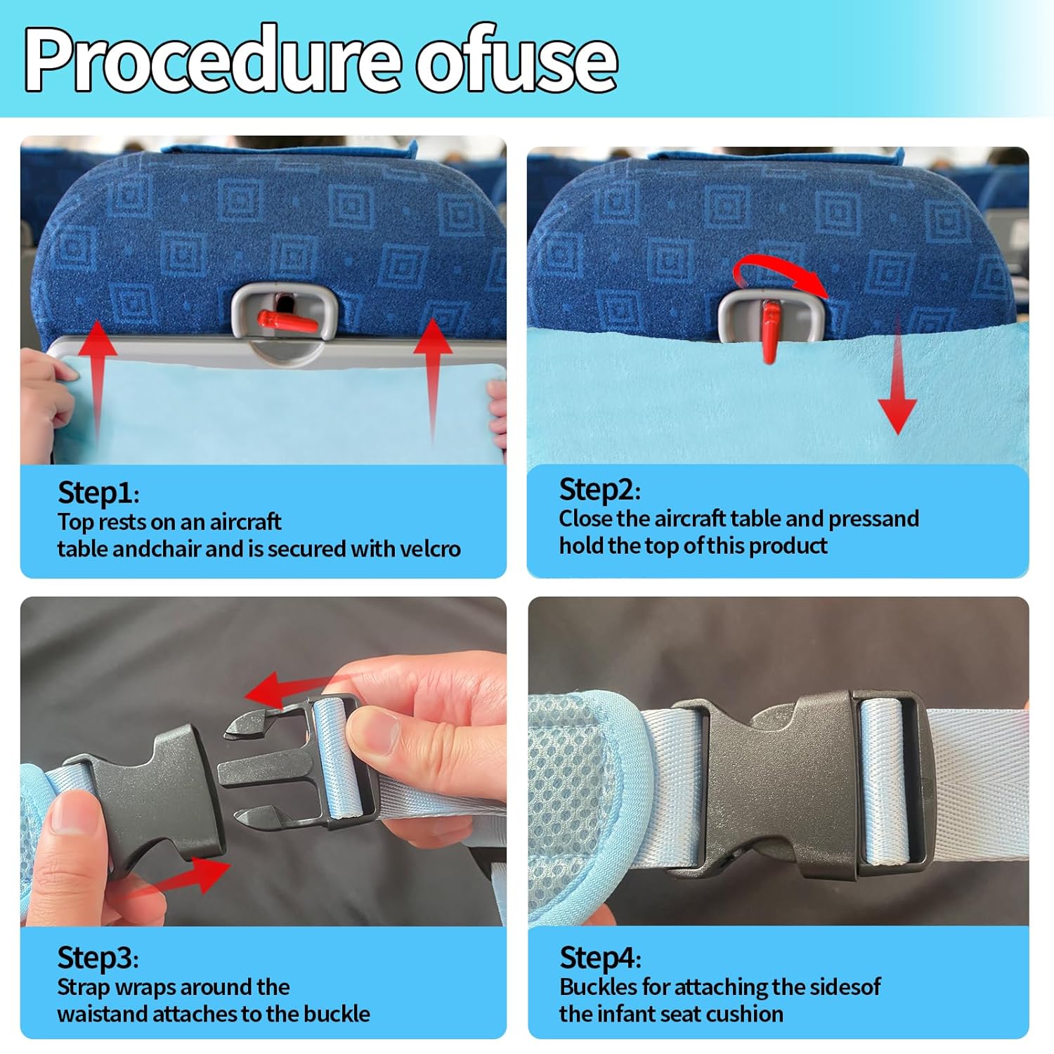 【Easy to Install】The installation process for the airplane infant travel bed is extremely simple and requires no special tools. Simply secure the travel bed to the airplane seat tray table and fasten the safety belt.