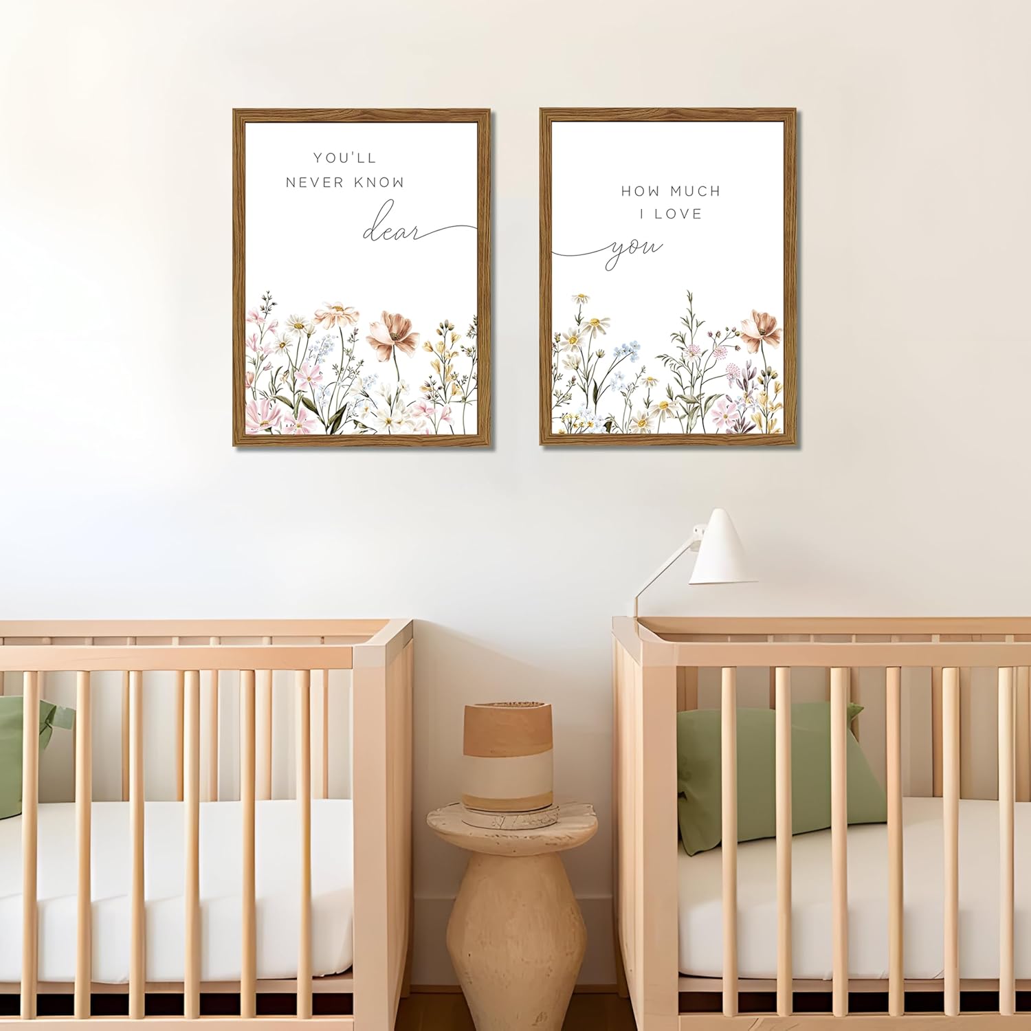 【Baby Girl Nursery Decor】 – Designed for nursery decor for girls, this wildflower baby nursery decor set beautifully complements baby wall decor, toddler girl room decor, and boho girls room decor. This beautiful set of 2 frame also features the touching message “You’ll Never Know Dear How Much I Love You,” bringing a daily dose of love and encouragement to your space—making it both visually calming and emotionally meaningful.