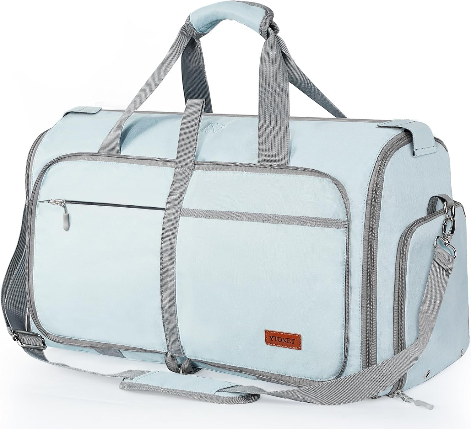 PREMIUM MATERIAL: With high-quality polyester fabric and high strength zipper, this convertible garment bag is scratch-resistant, anti-tear & anti water splashing. The padded handles relieve pressure on your hands or shoulder, make your travel fun and stress-free, no worries about break issues when traveling. Fits for quick weekend trip or short-time trips